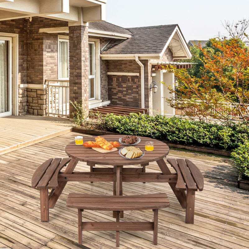 8-Person Outdoor Wooden Round Picnic Table Garden Circular Picnic Bear Table