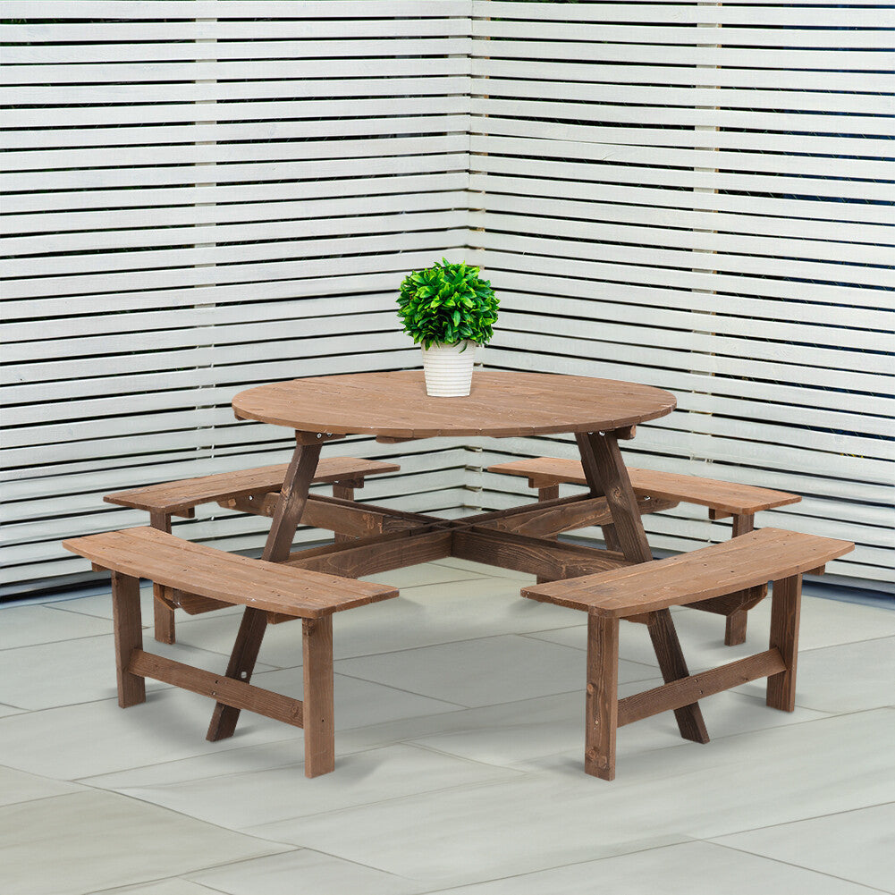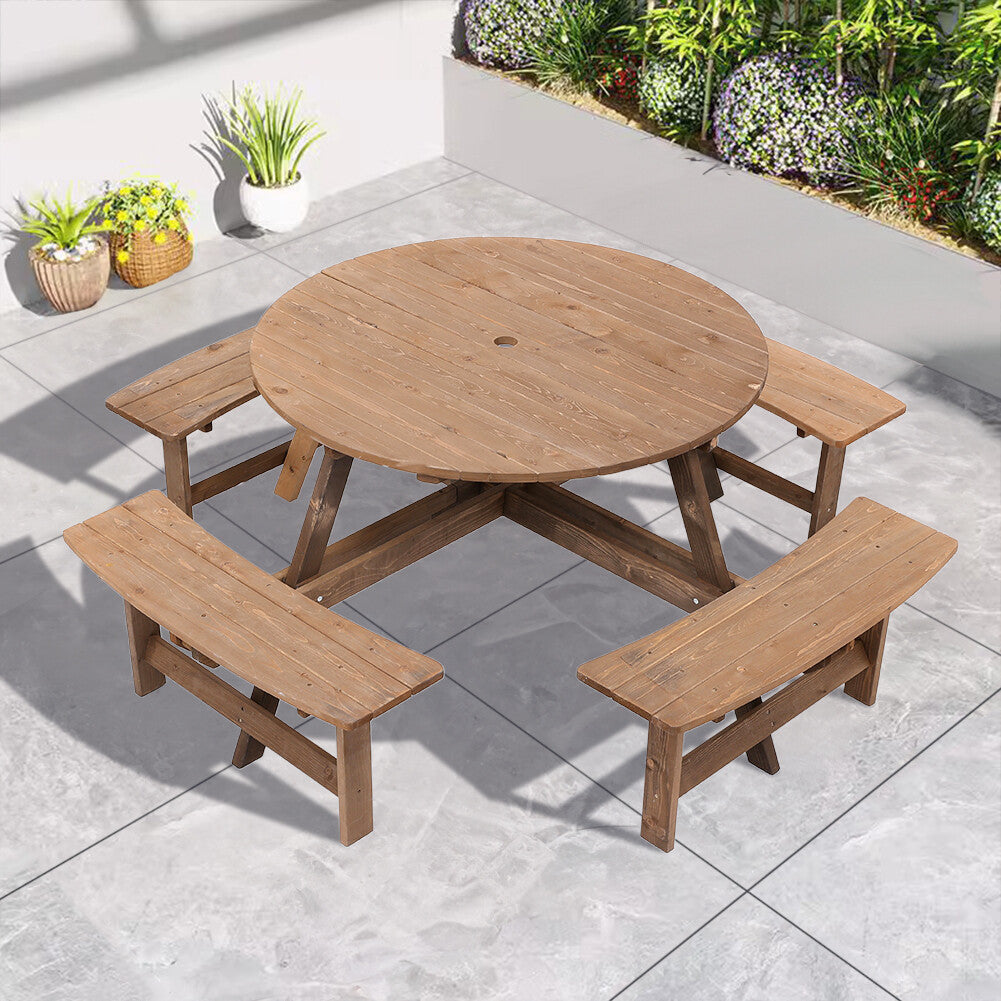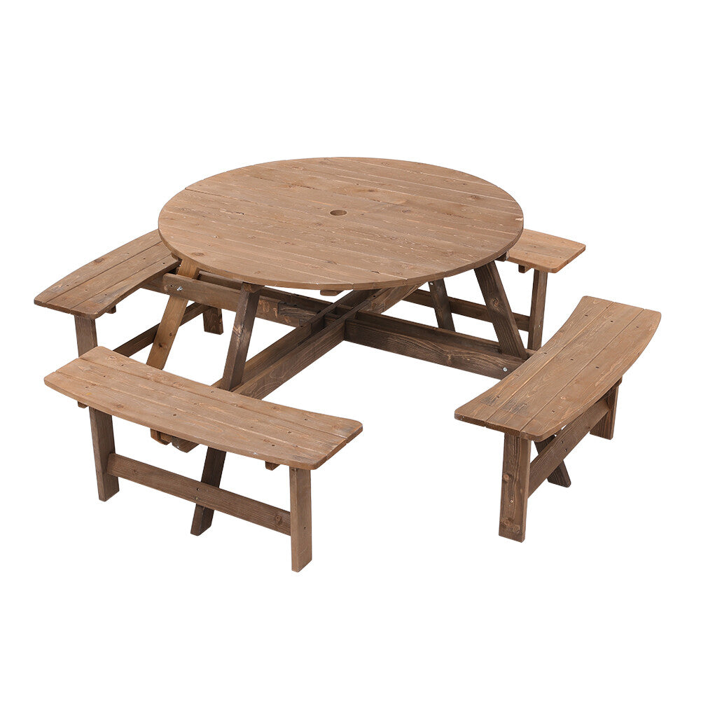 8 Seater Wooden Round Picnic Table and Bench Set Garden Furniture Set Outdoor