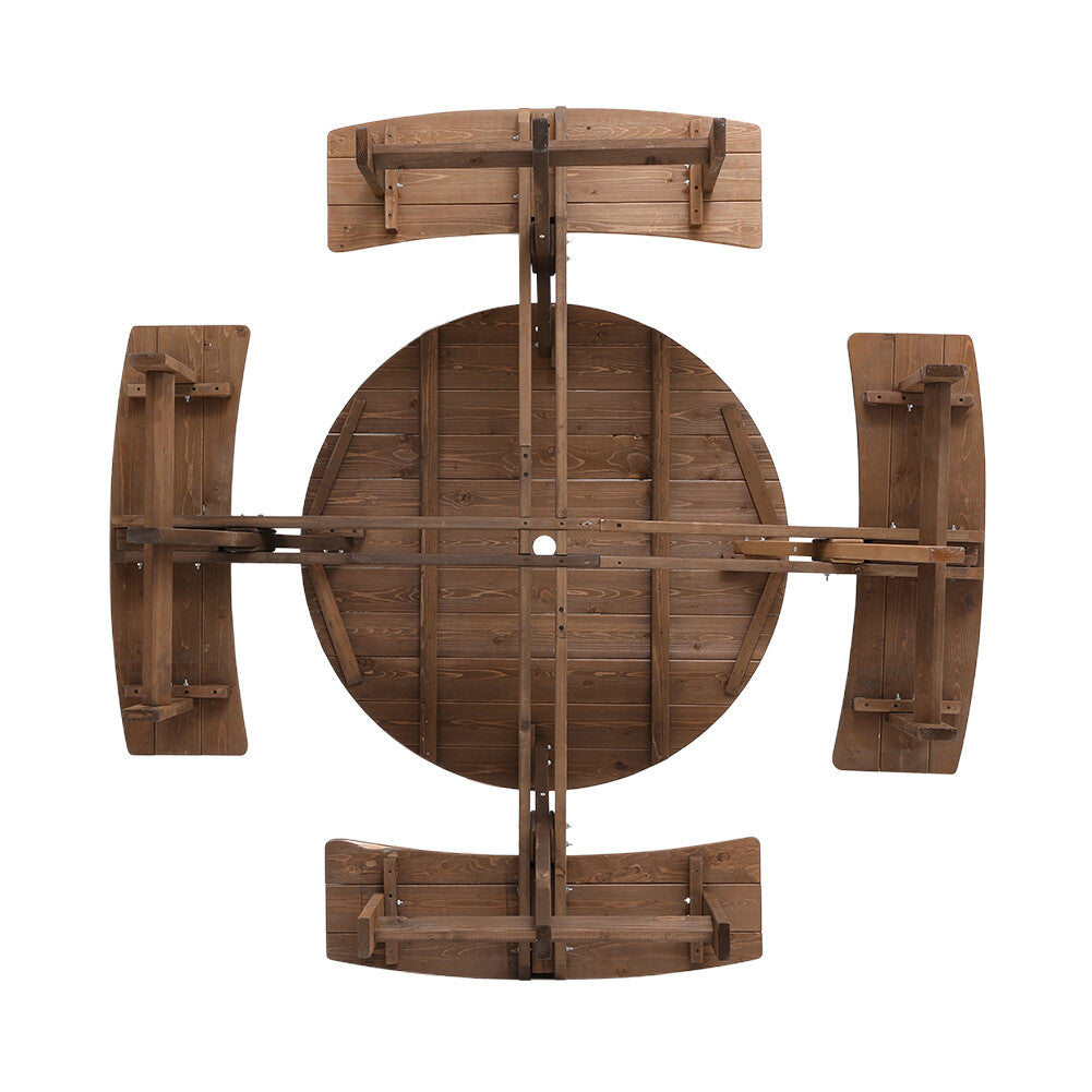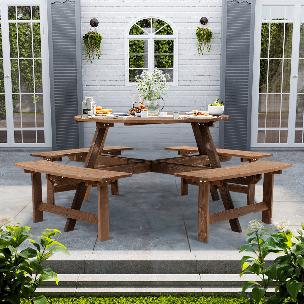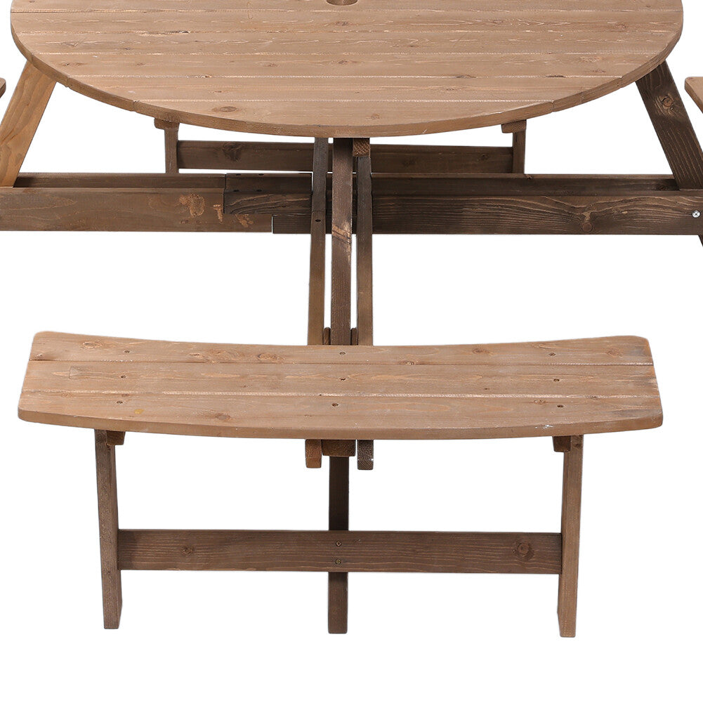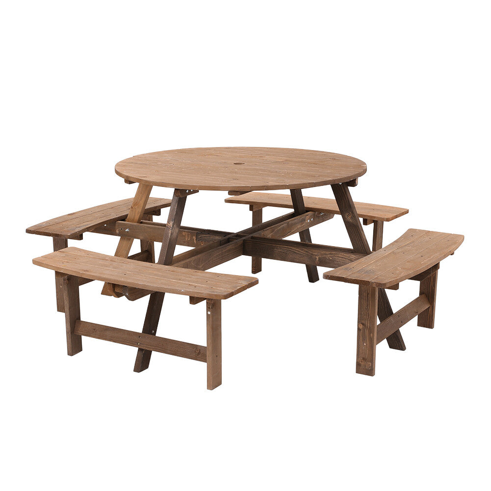 8 Seater Wooden Round Picnic Table and Bench Set Garden Furniture Set Outdoor