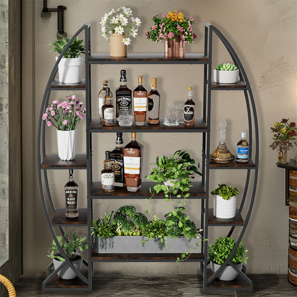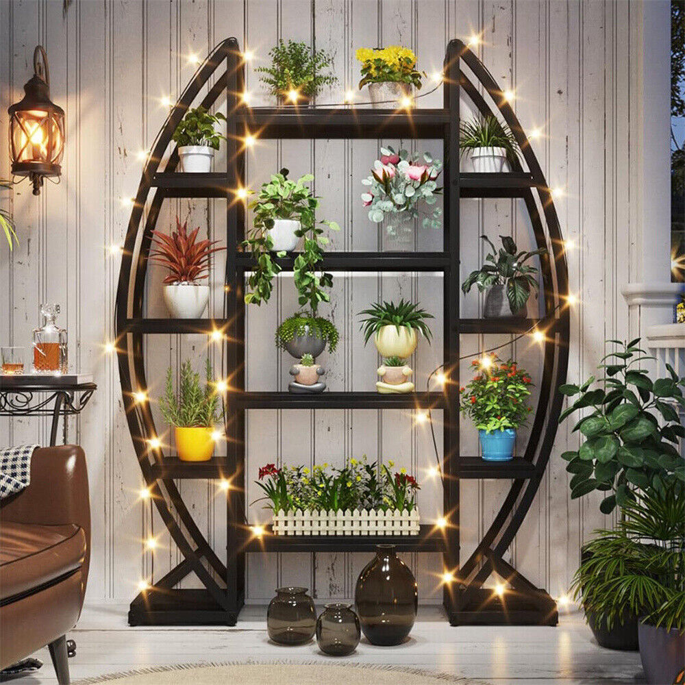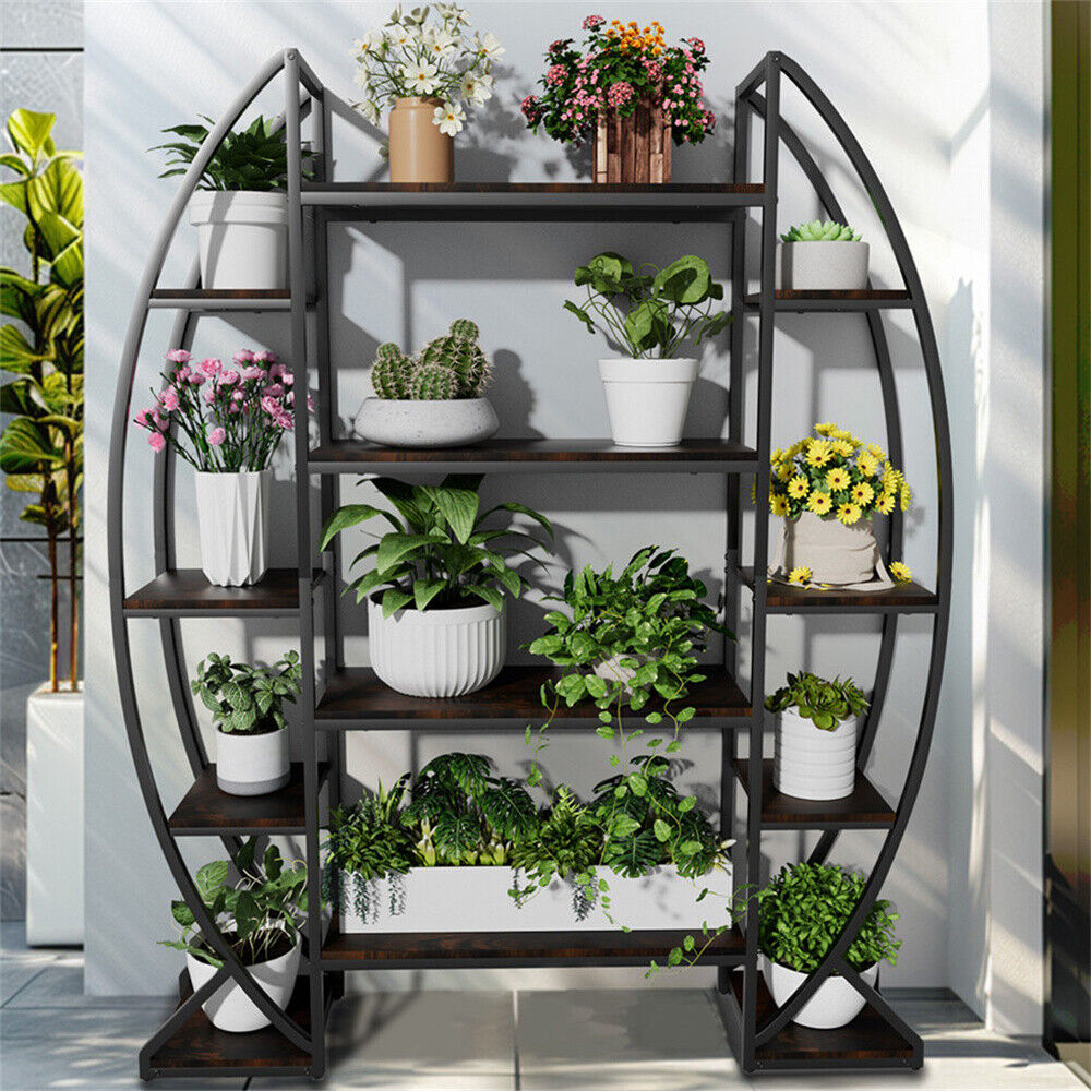 8 Tier Large Plant Stand Industrial Curved Oval Flower Pot Rack Opening Shelves
