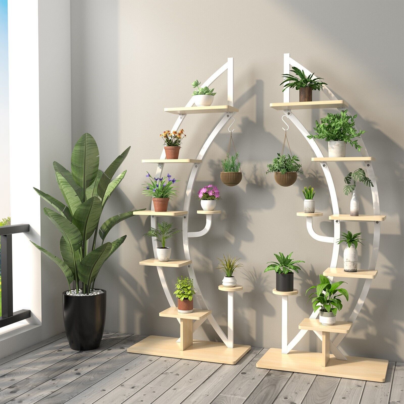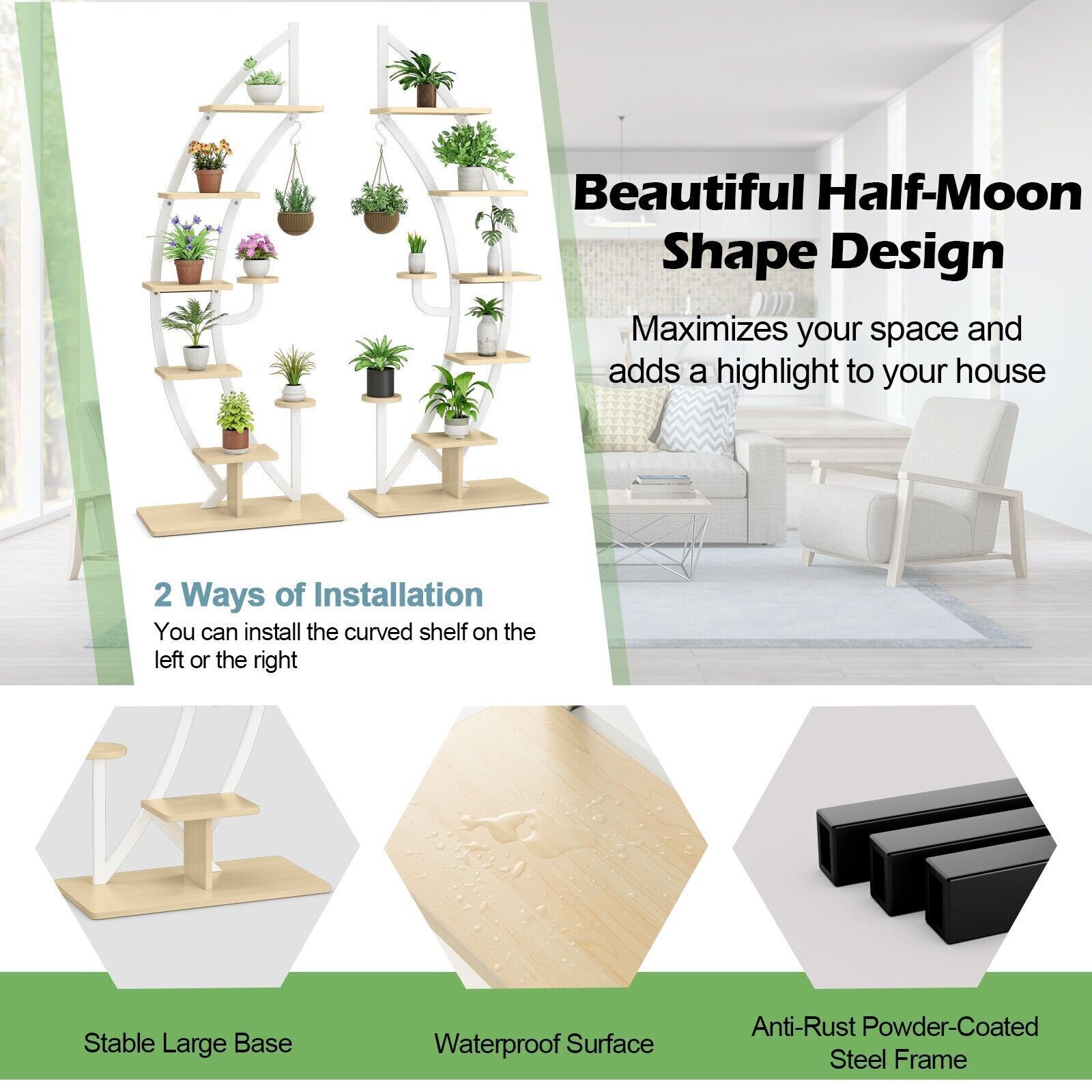 8-Tier Tall Wooden Plant Stand Rack Curved Half Moon Shape Ladder Planter Shelf