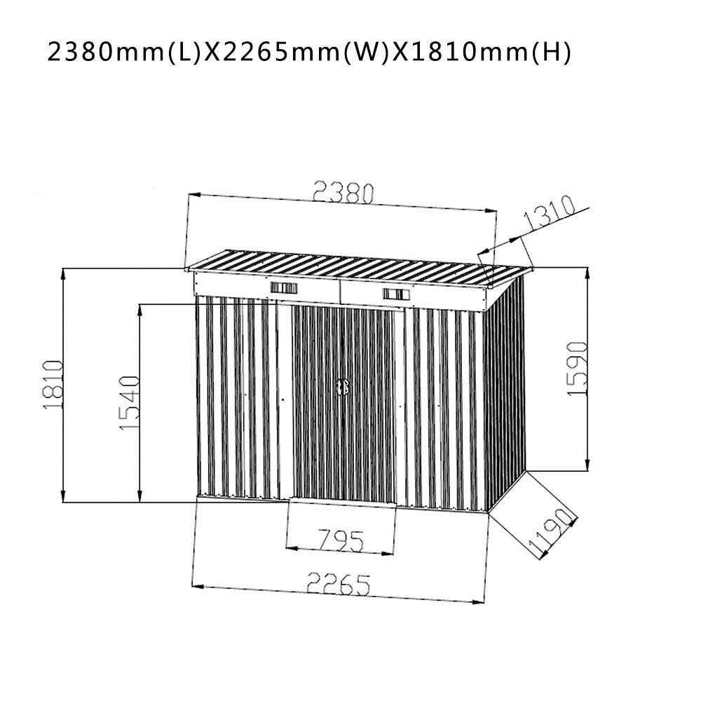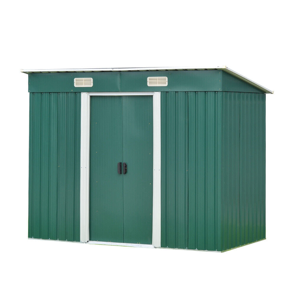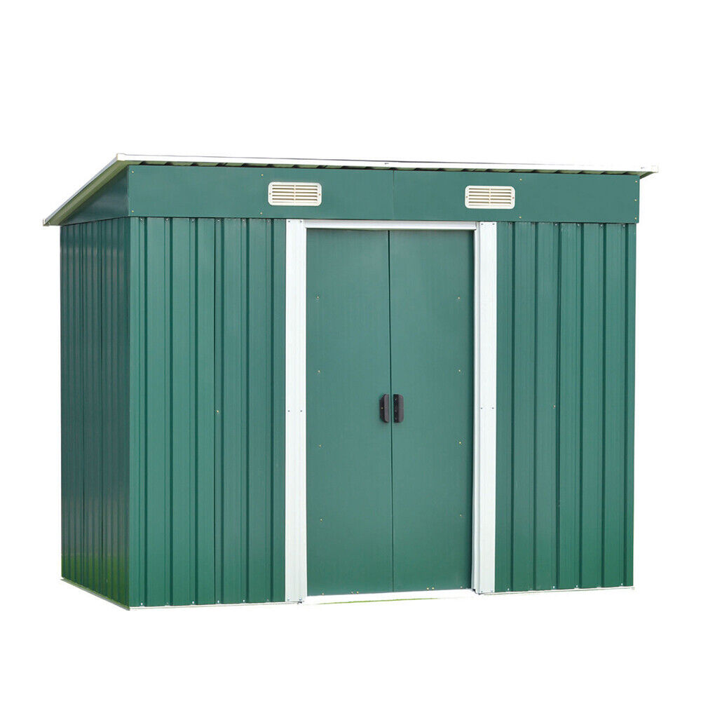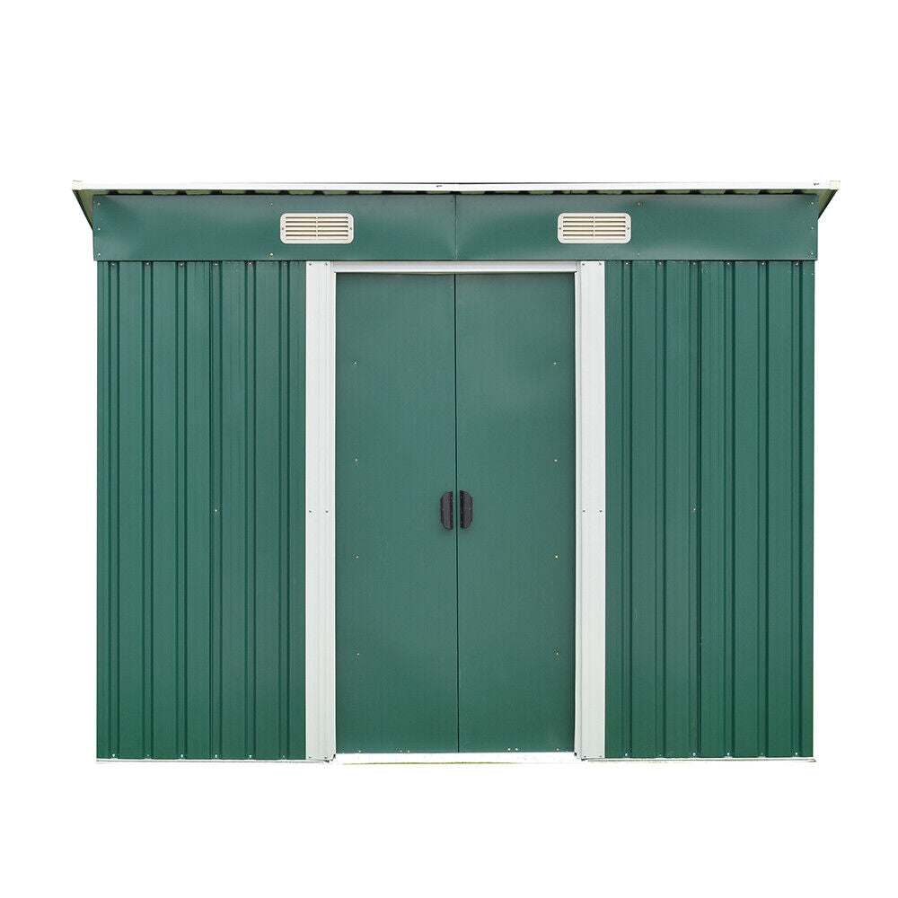 8 X 4FT Garden Shed Metal Pent Roof Outdoor Tool Storage With Free Base Green