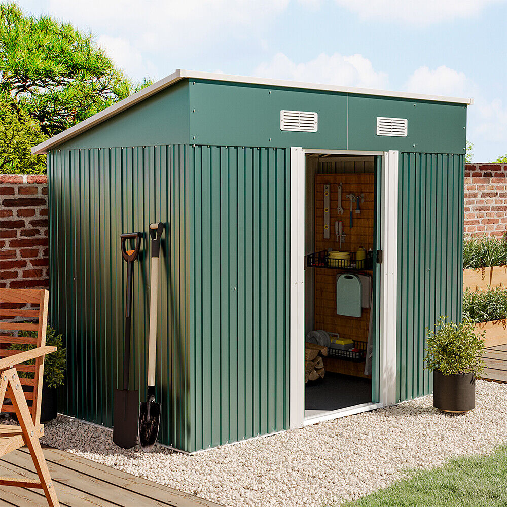8 x 4FT Metal Shed Steel Pent Roof Garden Storage Tool Bike Sheds with FREE BASE