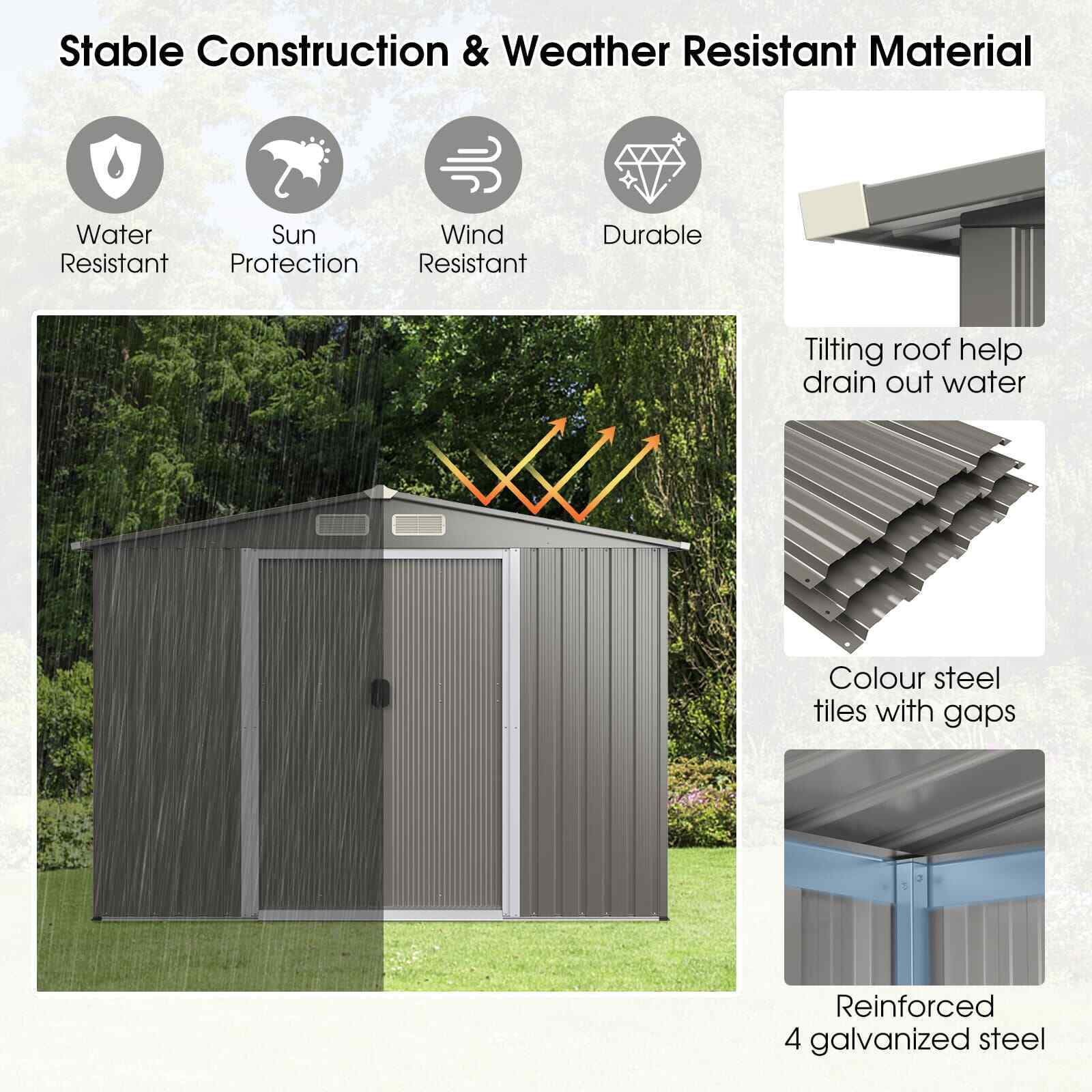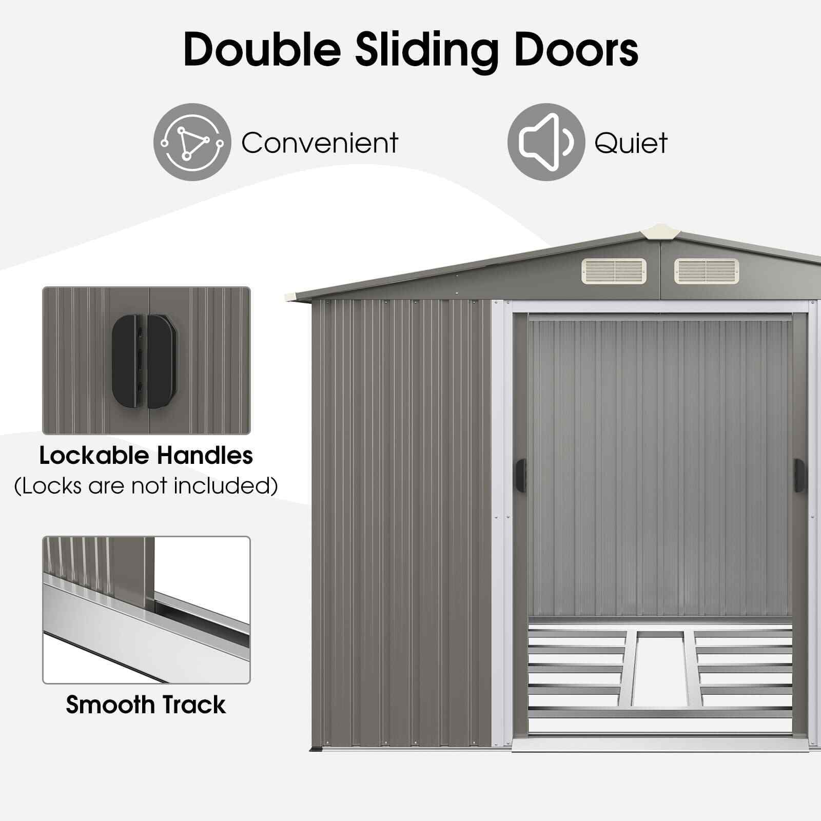 8’ x 6’ Outdoor Storage Shed Galvanized Steel Tool Shed