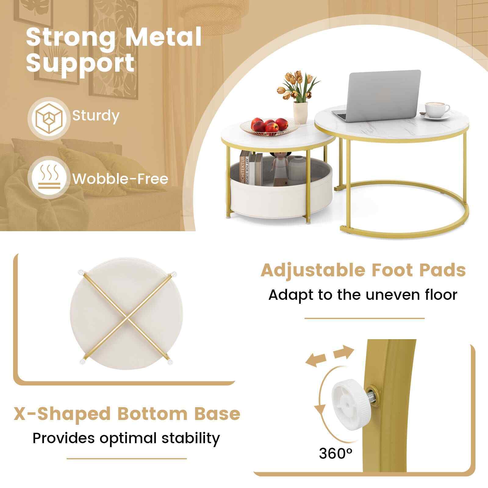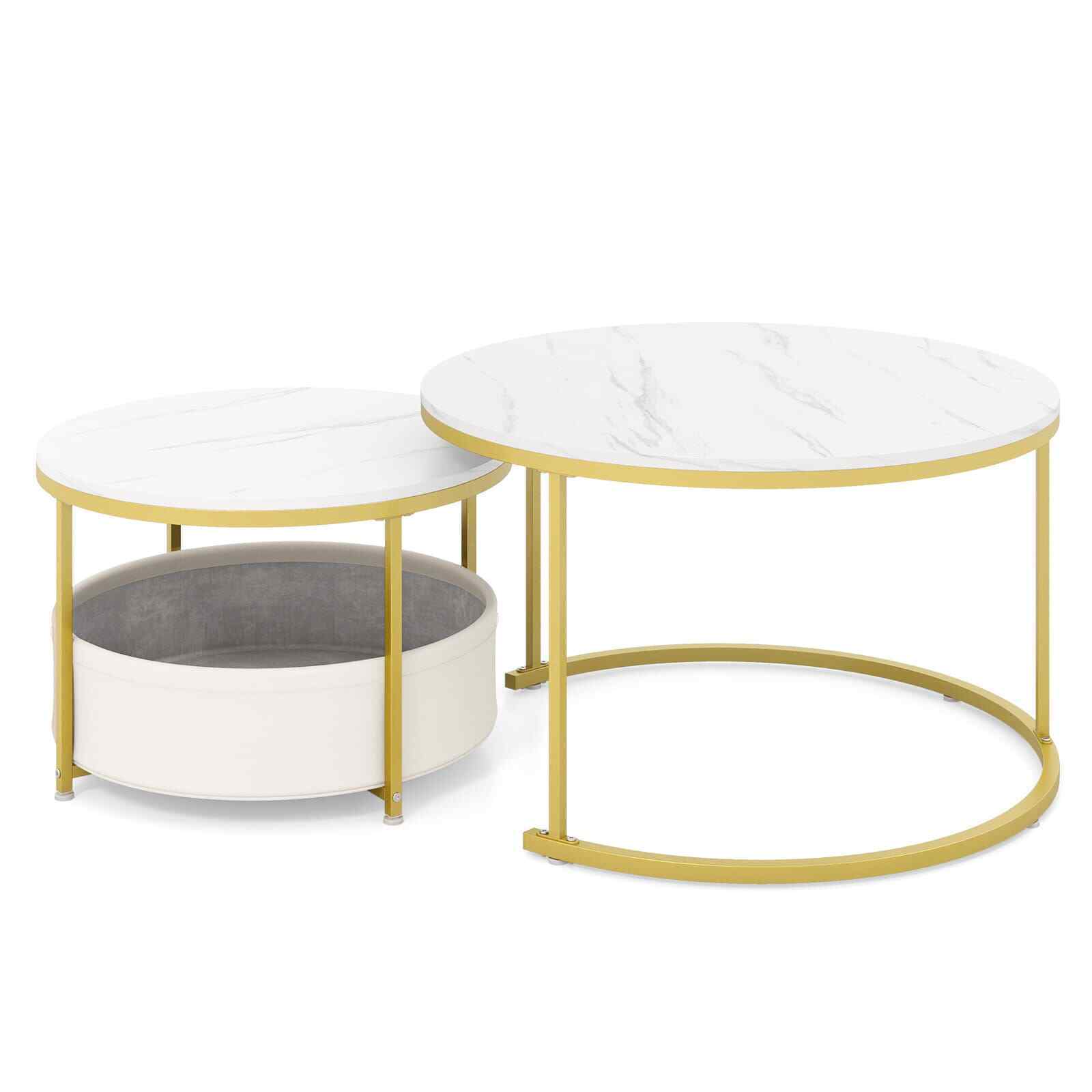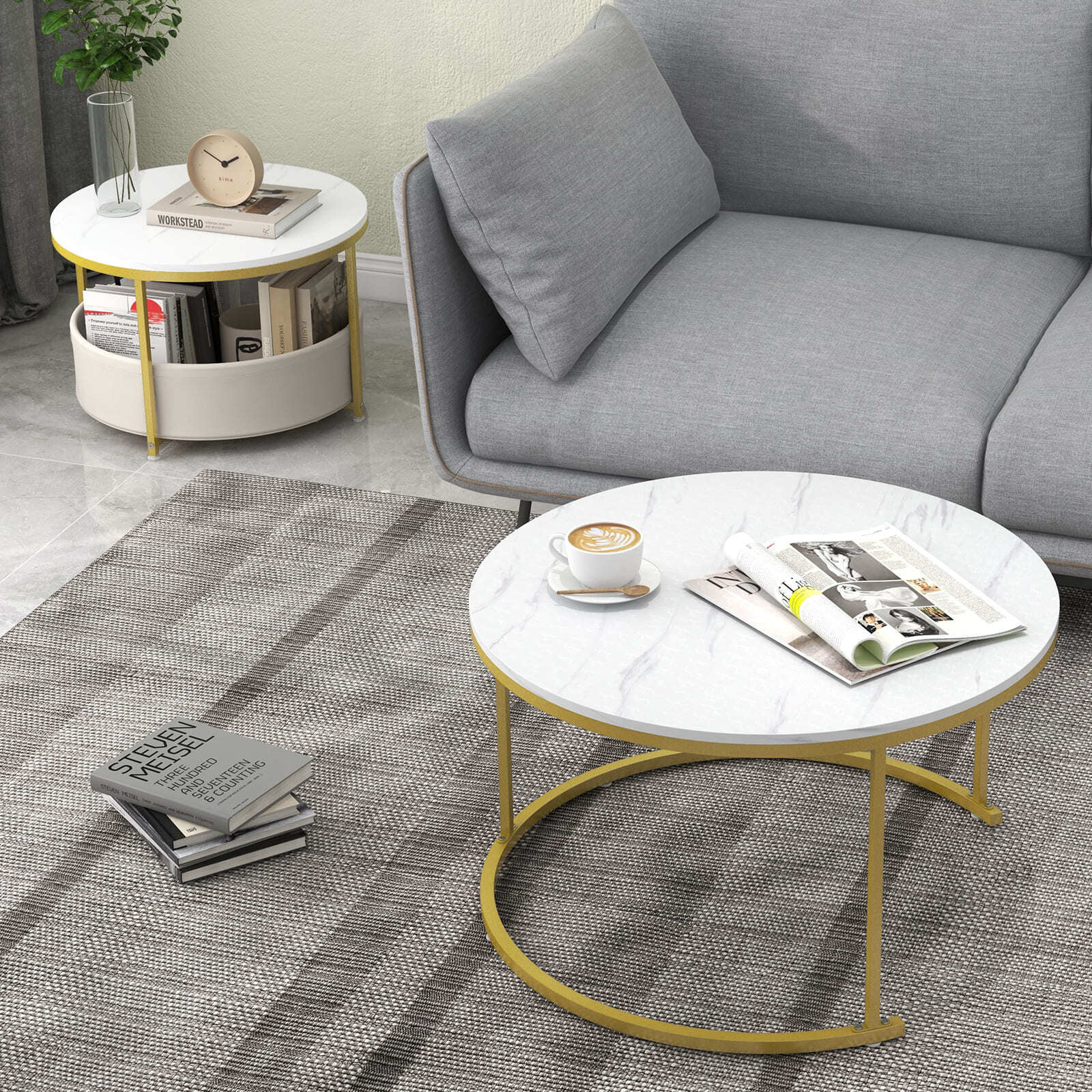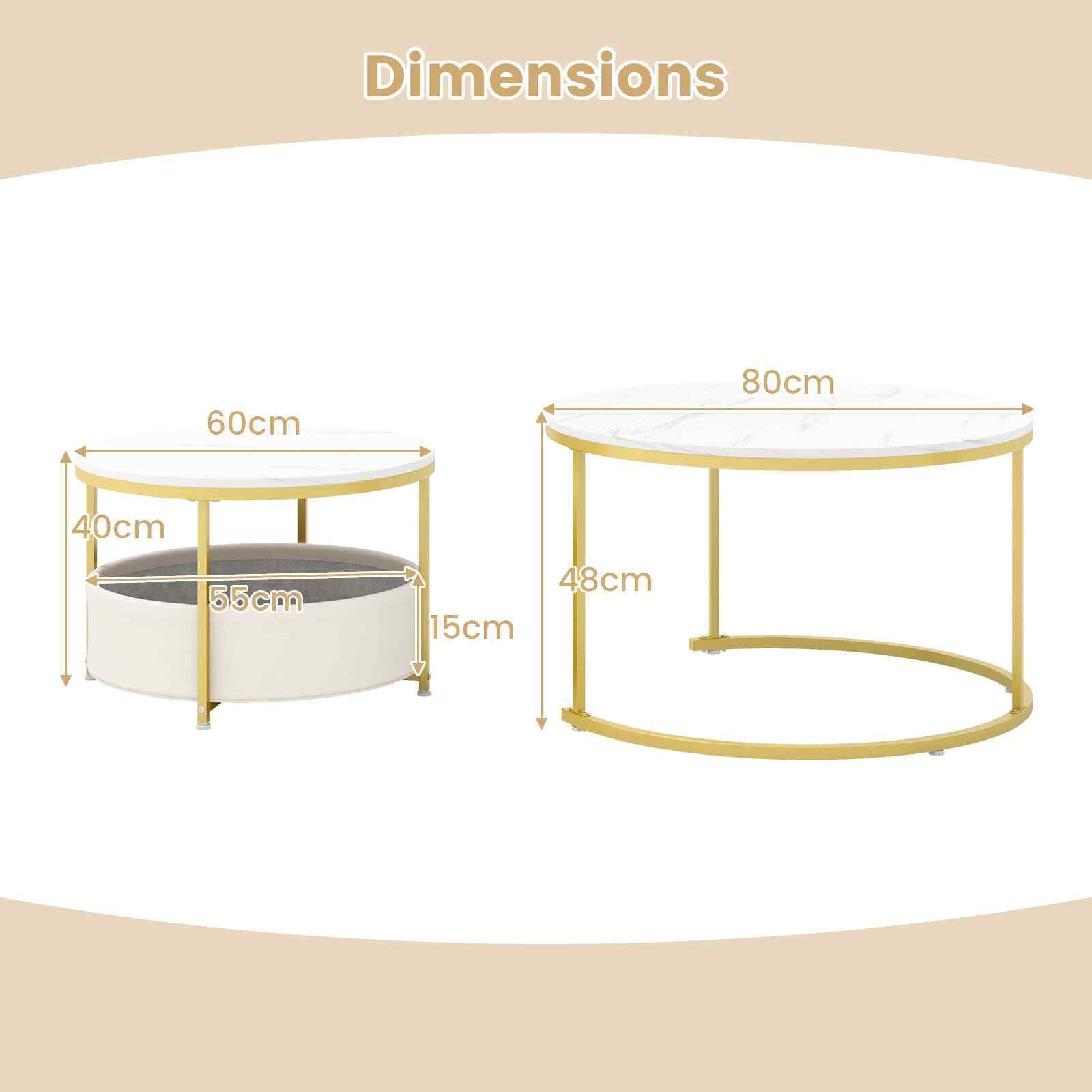 80 & 60 CM Circle Cocktail Table Round Coffee Table Set of 2-White