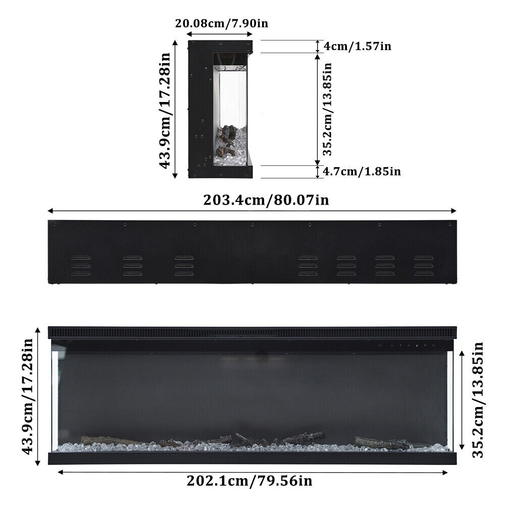 80 inch Electric Fireplace 3 Sided Panoramic Fire Standing Insert LED Flames
