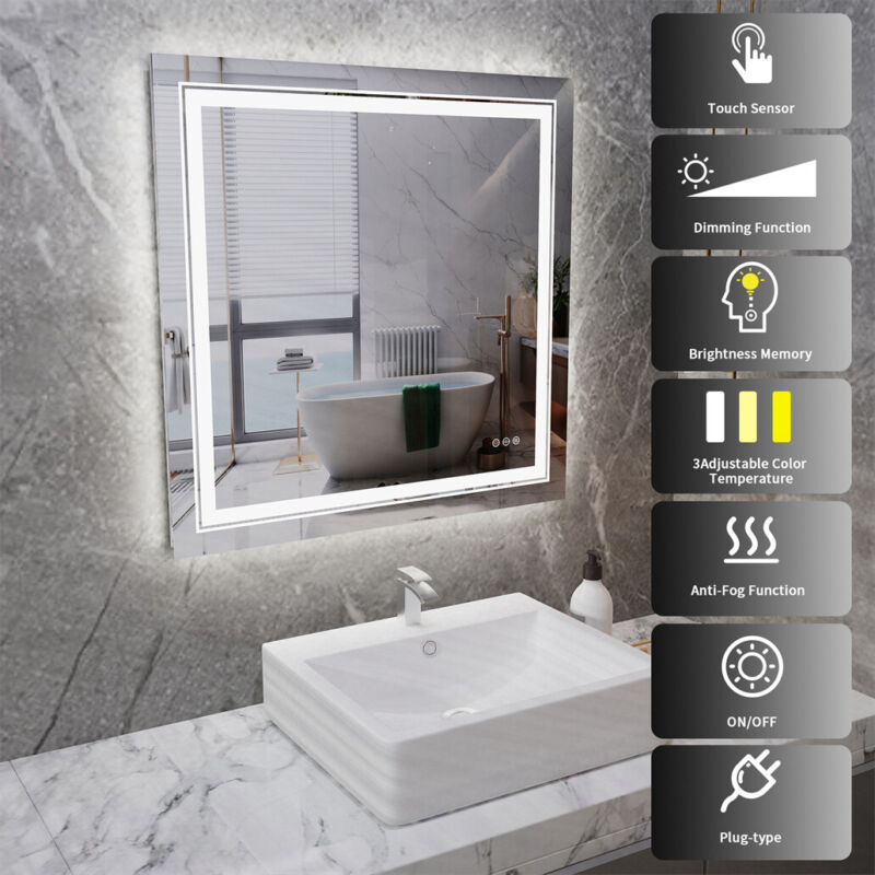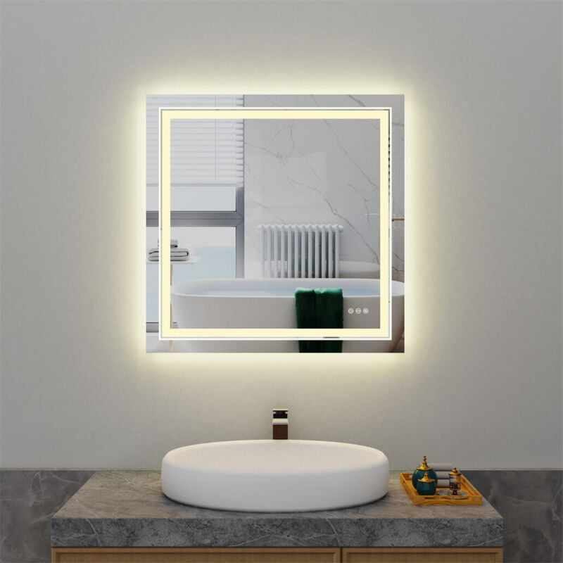 800x800mm Illuminated Bathroom Mirror Dimmable LED Light Vanity Makeup Anti Fog