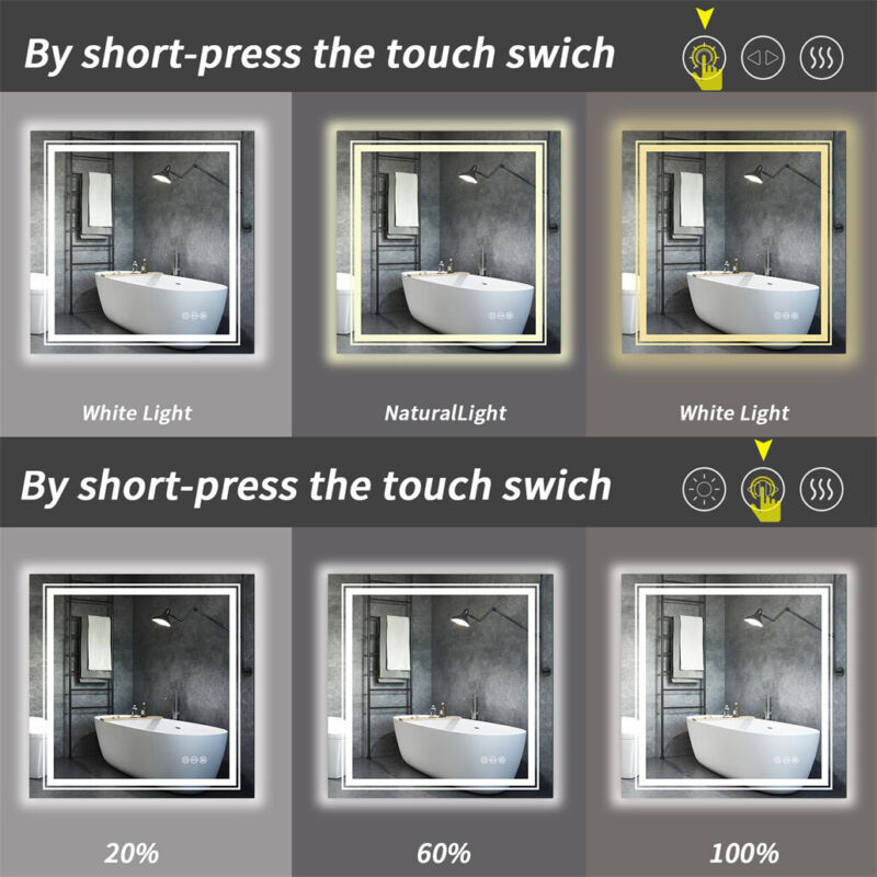 Features Heated, LED Lighted, Touch Sensor, Fogless, Backlit, Shaver Socket