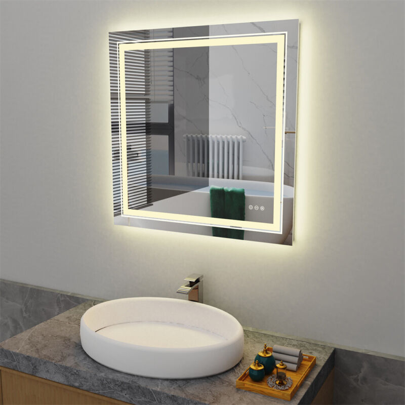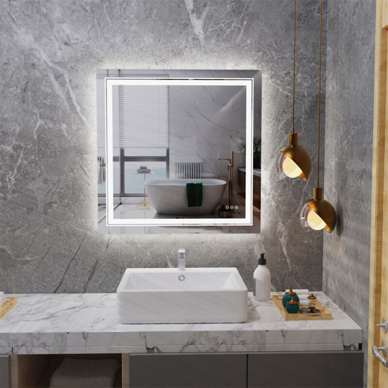 800x800mm Illuminated Bathroom Mirror Dimmable LED Light Vanity Makeup Anti Fog