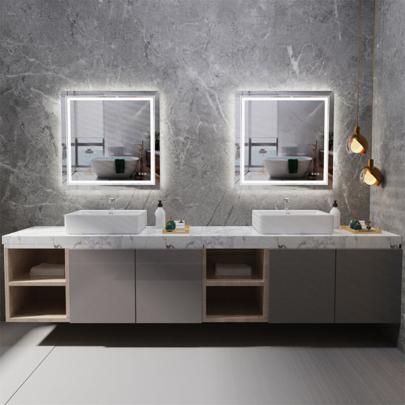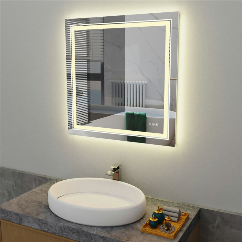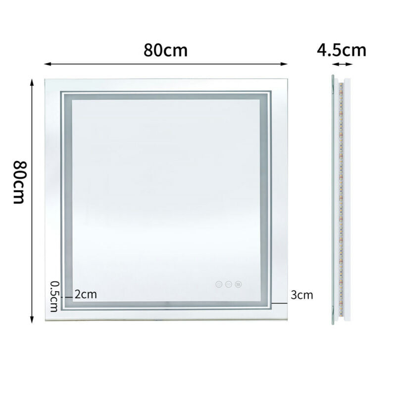 800x800mm LED Illuminated Bathroom Mirror Dual Light With Demister Touch Switch