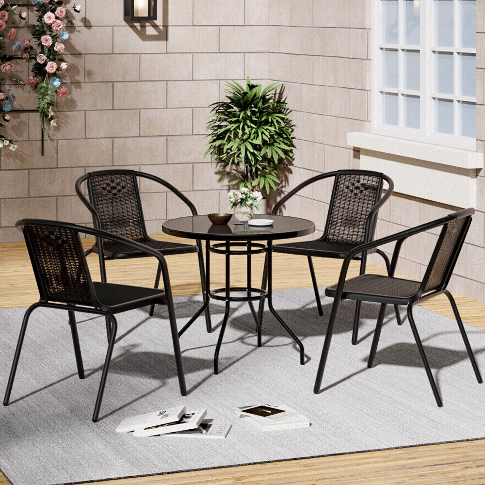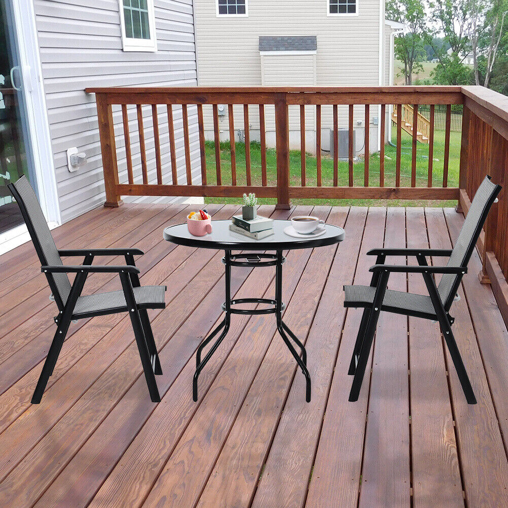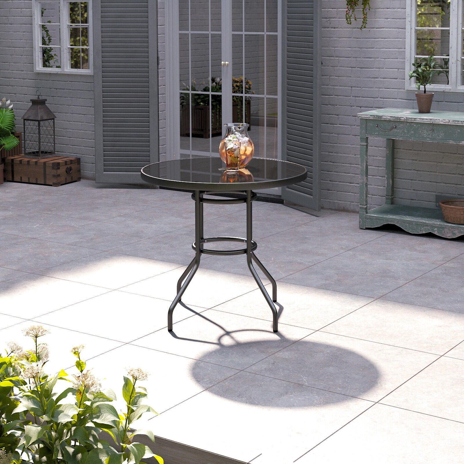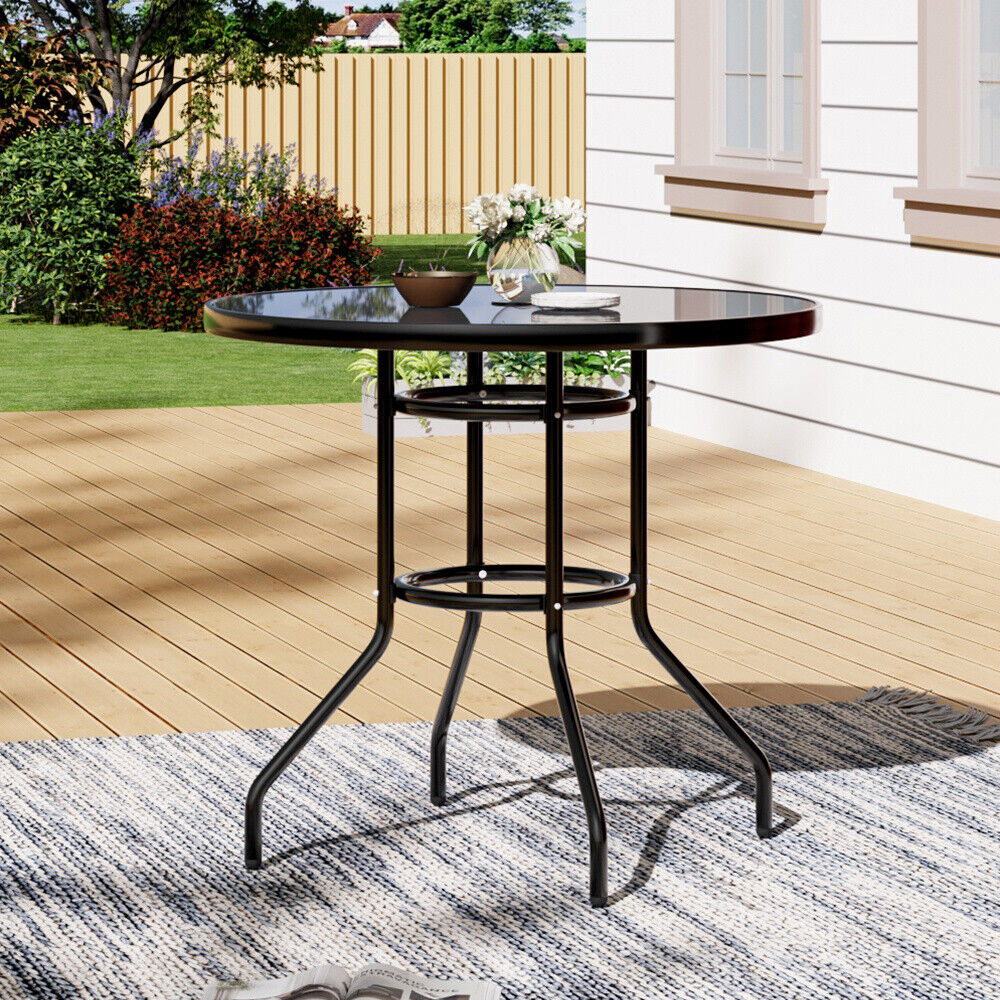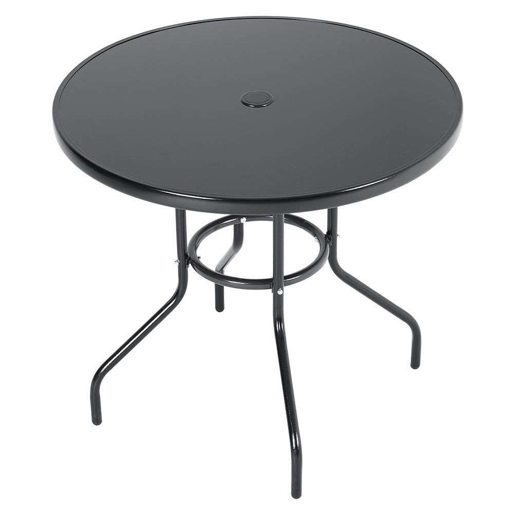80cm Black Round Garden Table Outdoor Cafe Patio Dining Table with Parasol Hole