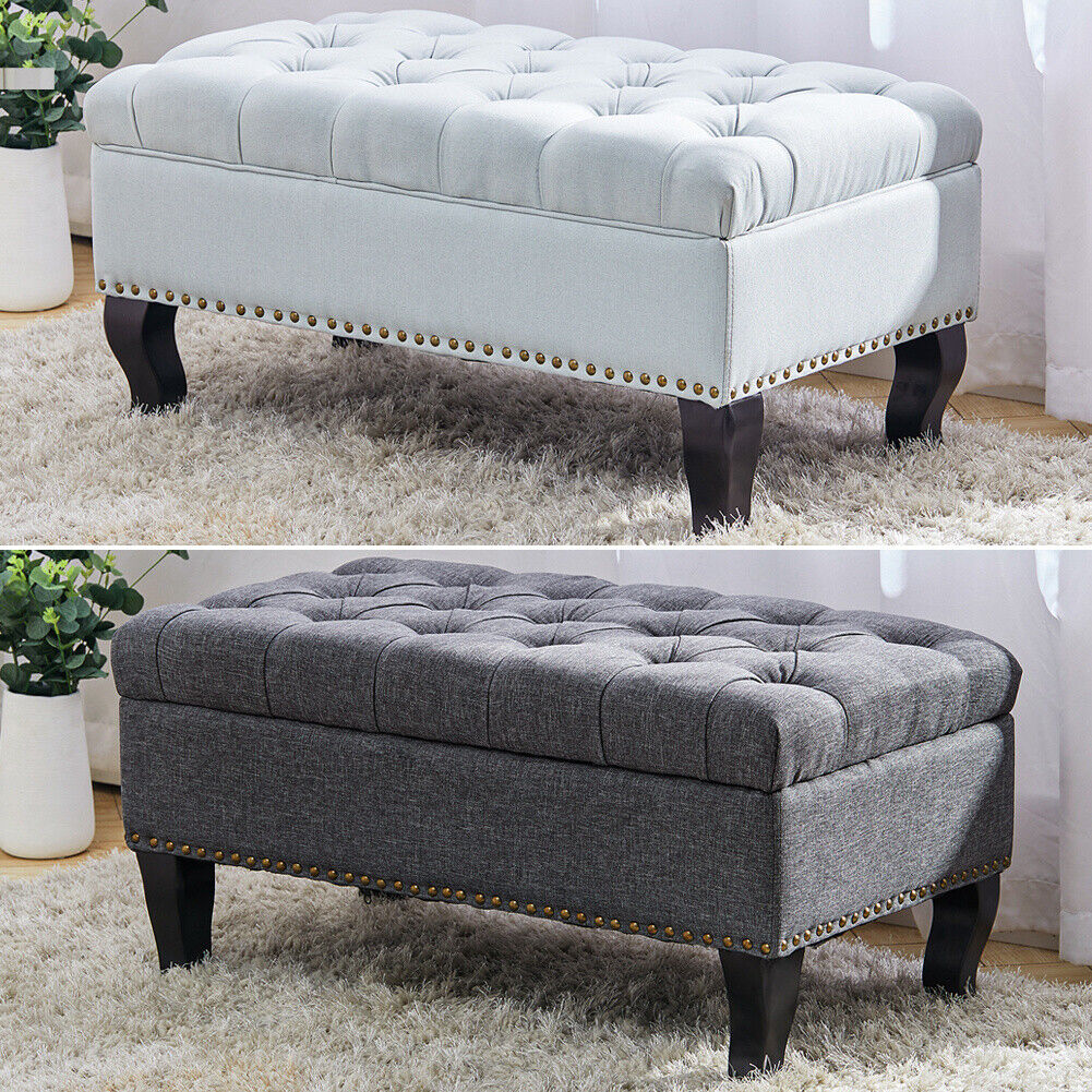 80cm Fabric Linen Padded Seat Stool Coffee Table Sofa Ottoman Footstool Bench