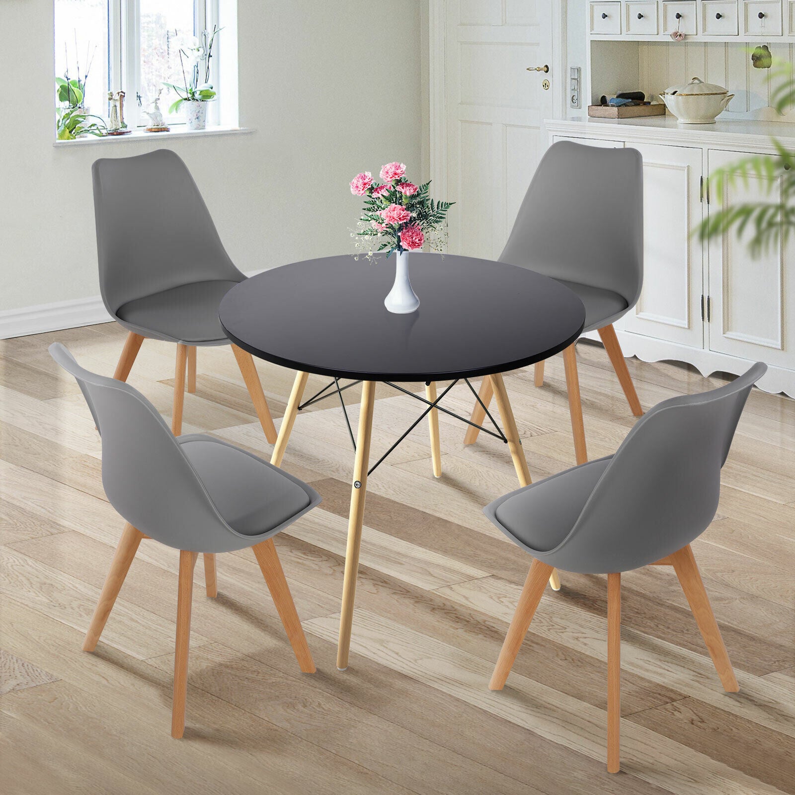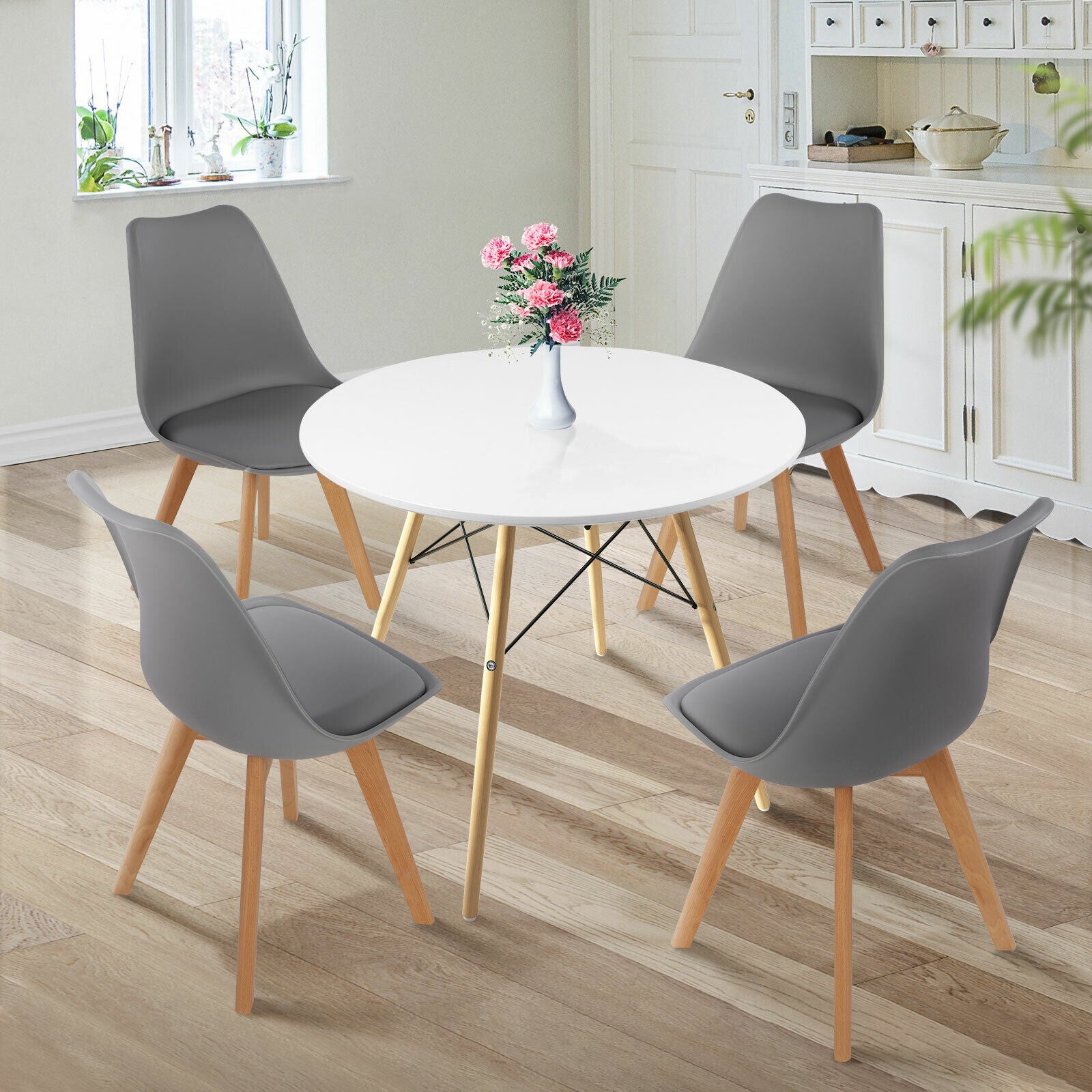 80cm Round Dining Table and 4 Tulip Chairs Set Padded Seat Kitchen Cafe Lounge