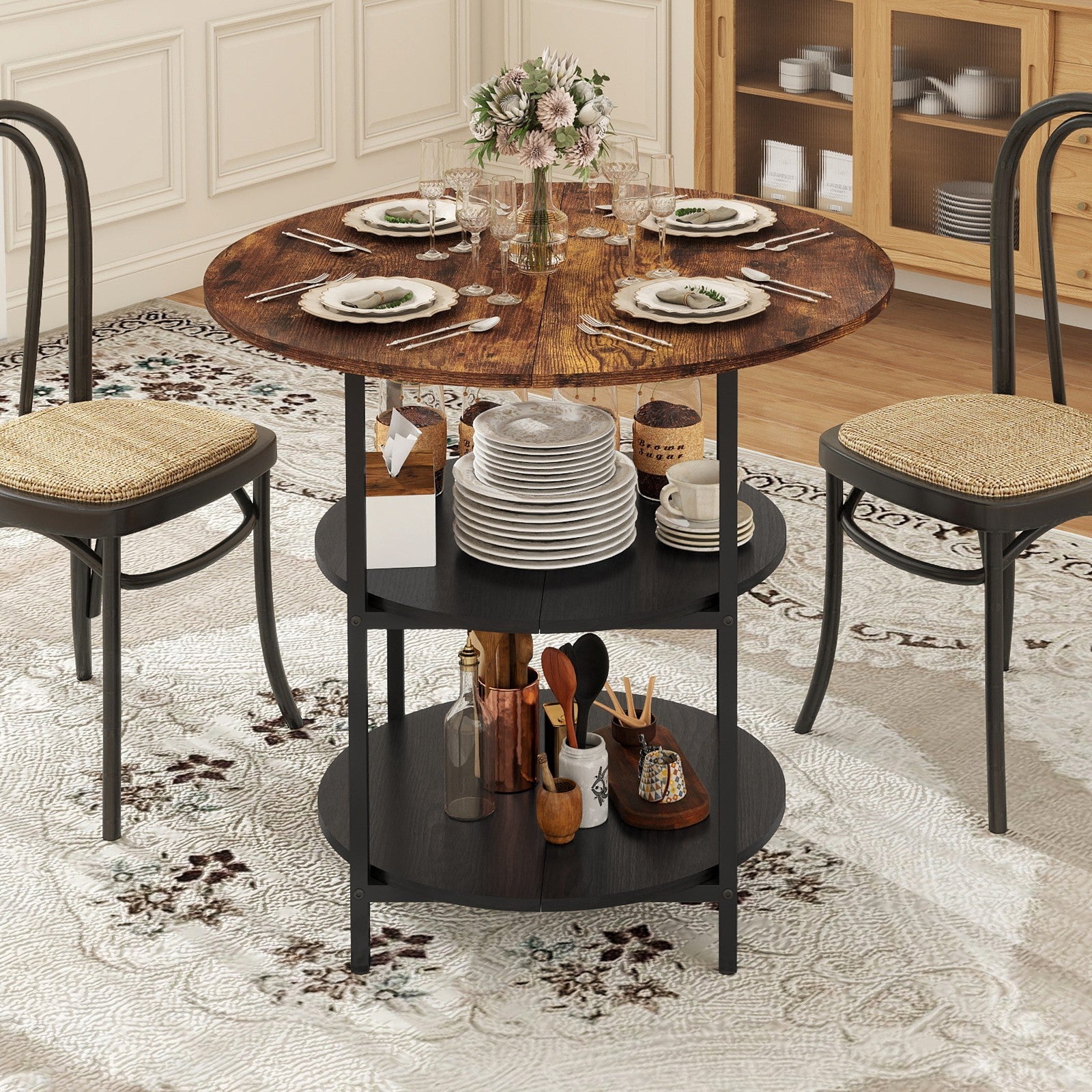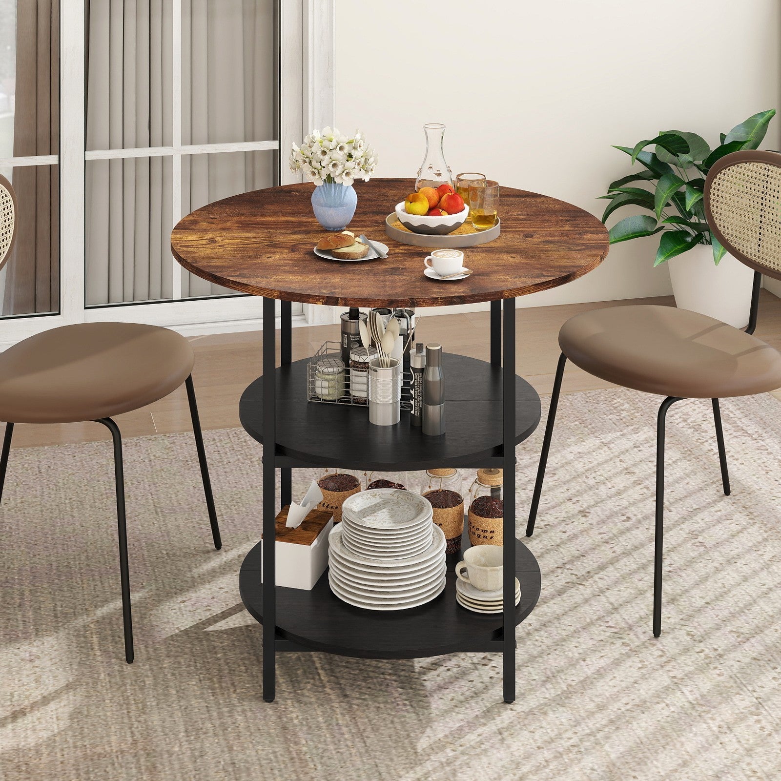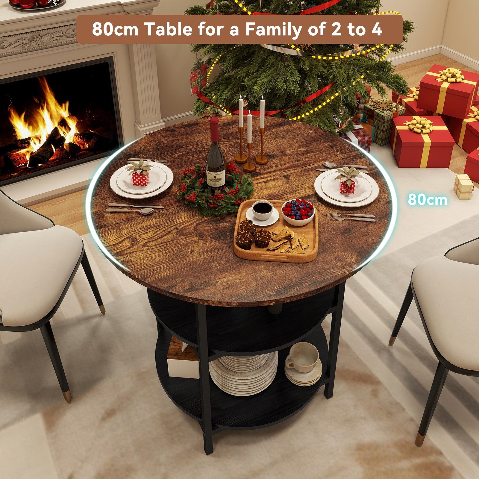 80cm Round Dining Table Small Industrial Kitchen Desk Space Saving 3-Tier Brown