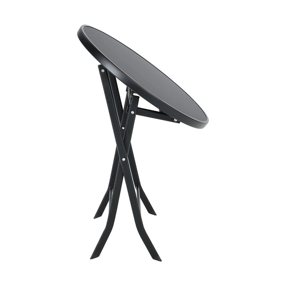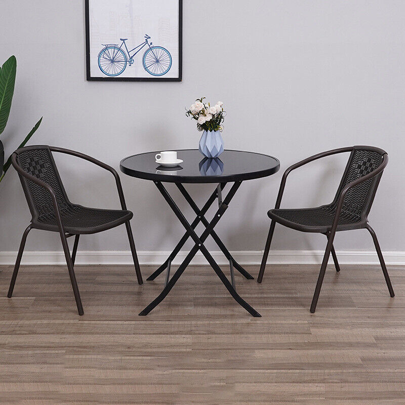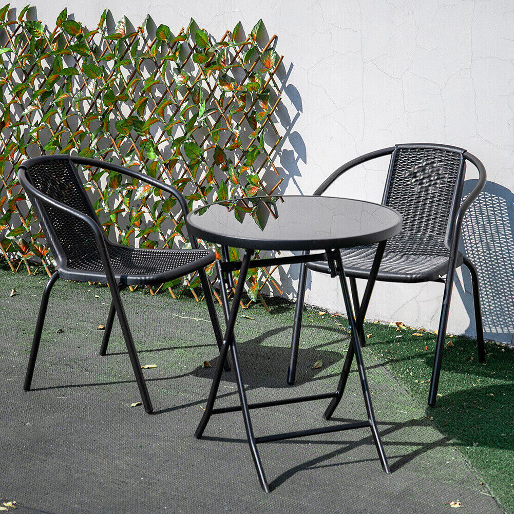 80CM Round Glass Garden Table &2 Rattan Chairs Outdoor Balcony Bistro Dining Set