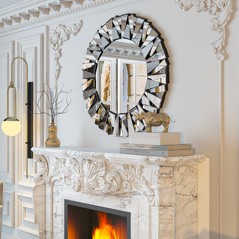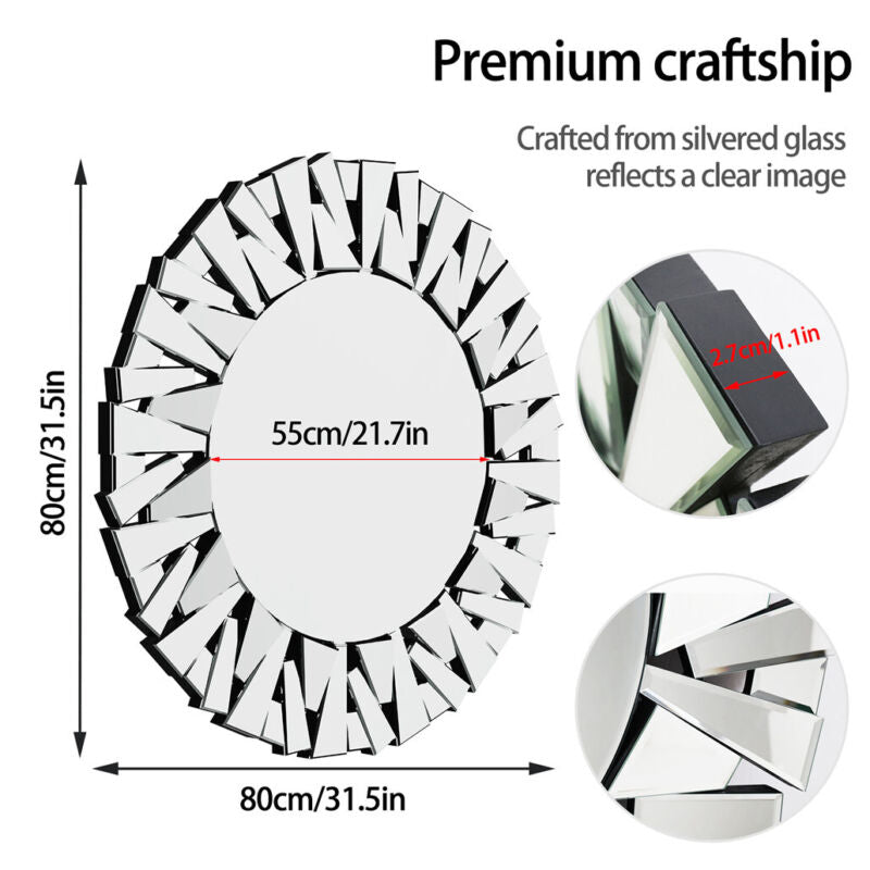 80cm Round Sunburst Art Accent Mirror Wall Mounted Vanity Fireplace Hallway Home