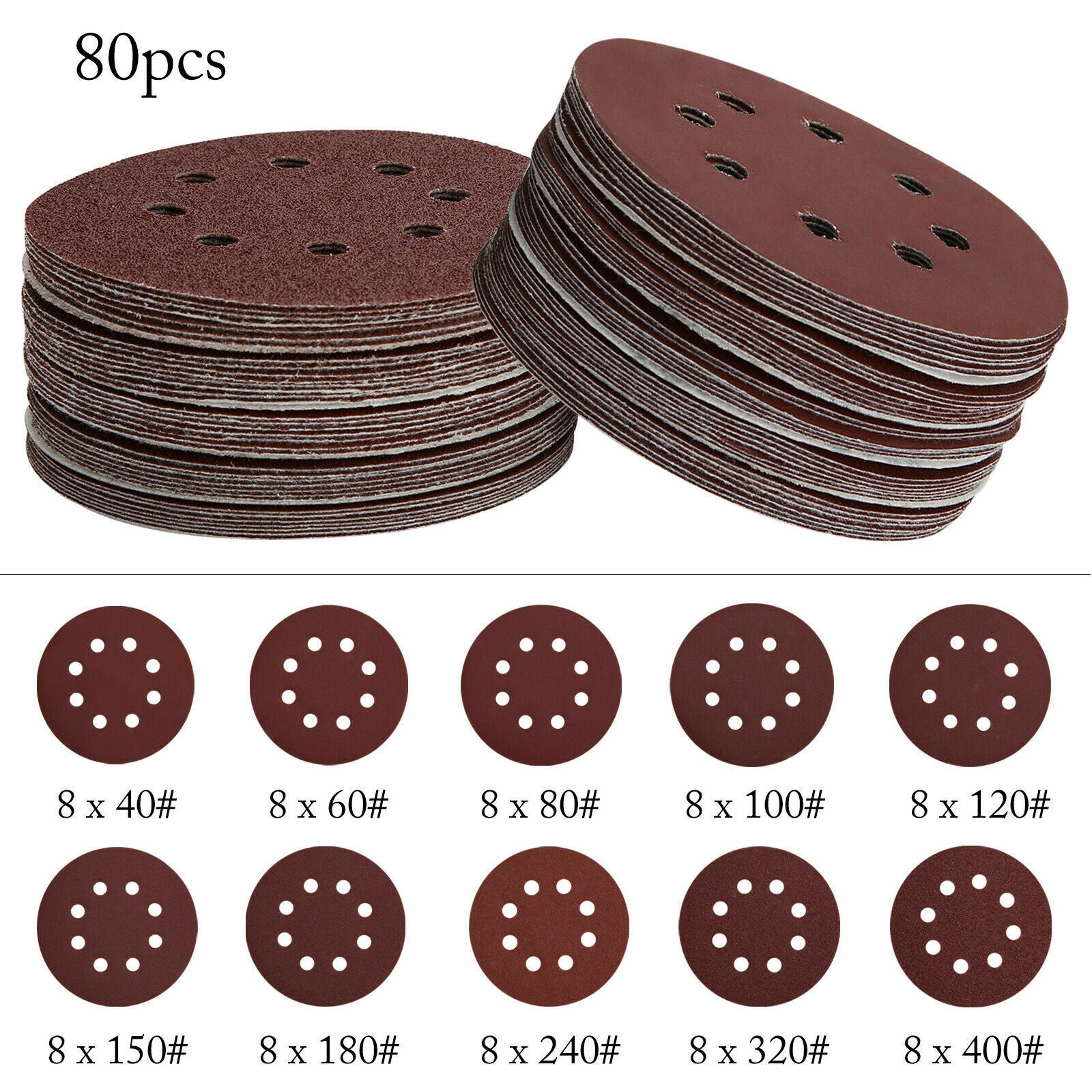 80Pcs/set 125mm - 5 inch Sanding Discs 40 60 80 100 120 180 240 320 400 Grit UK