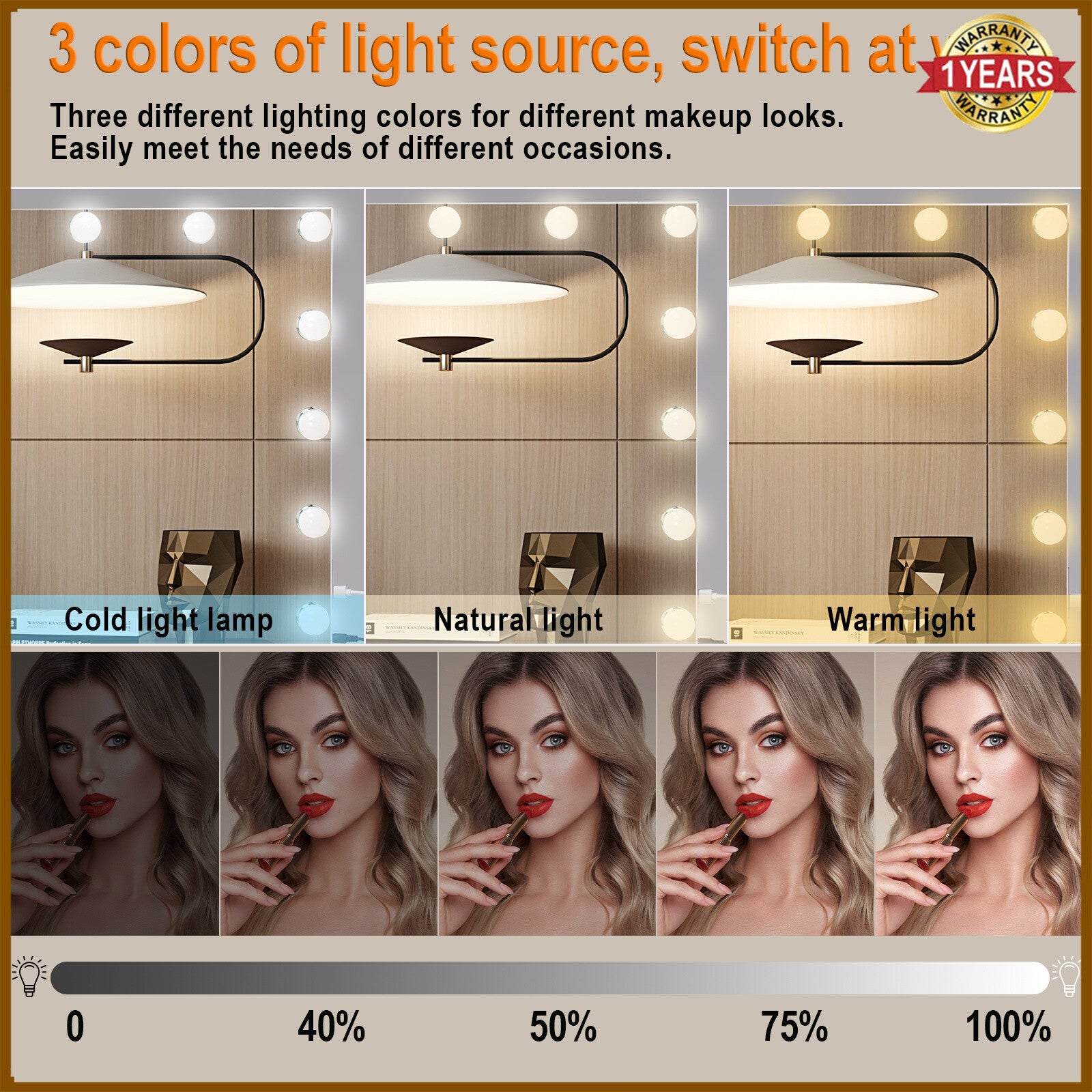 80x60cm Hollywood Mirror Dressing Table Desk Make up Mirrors with LED Light