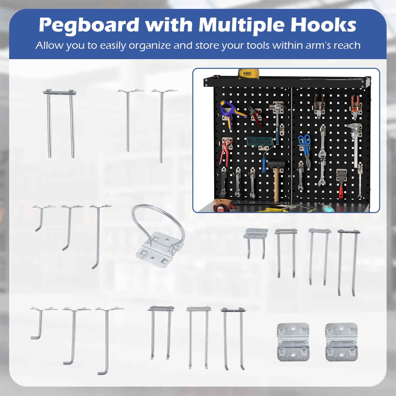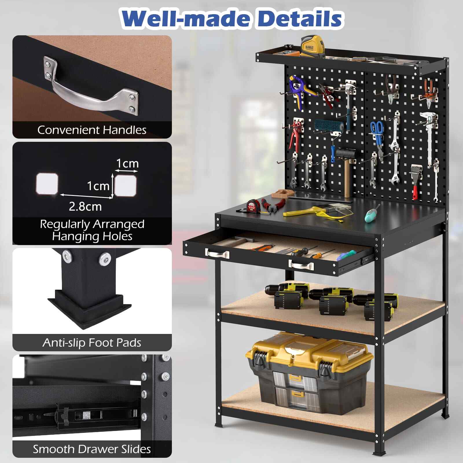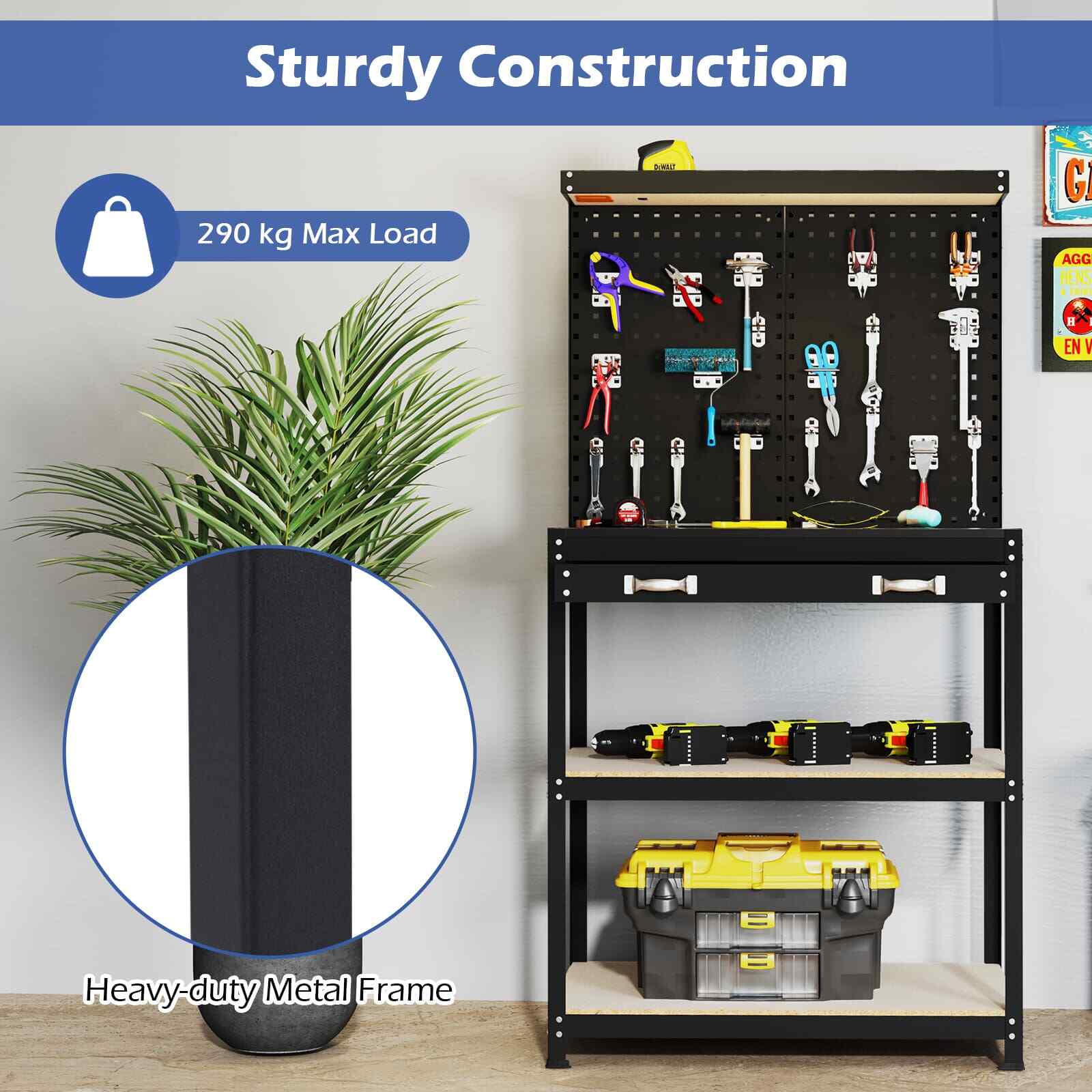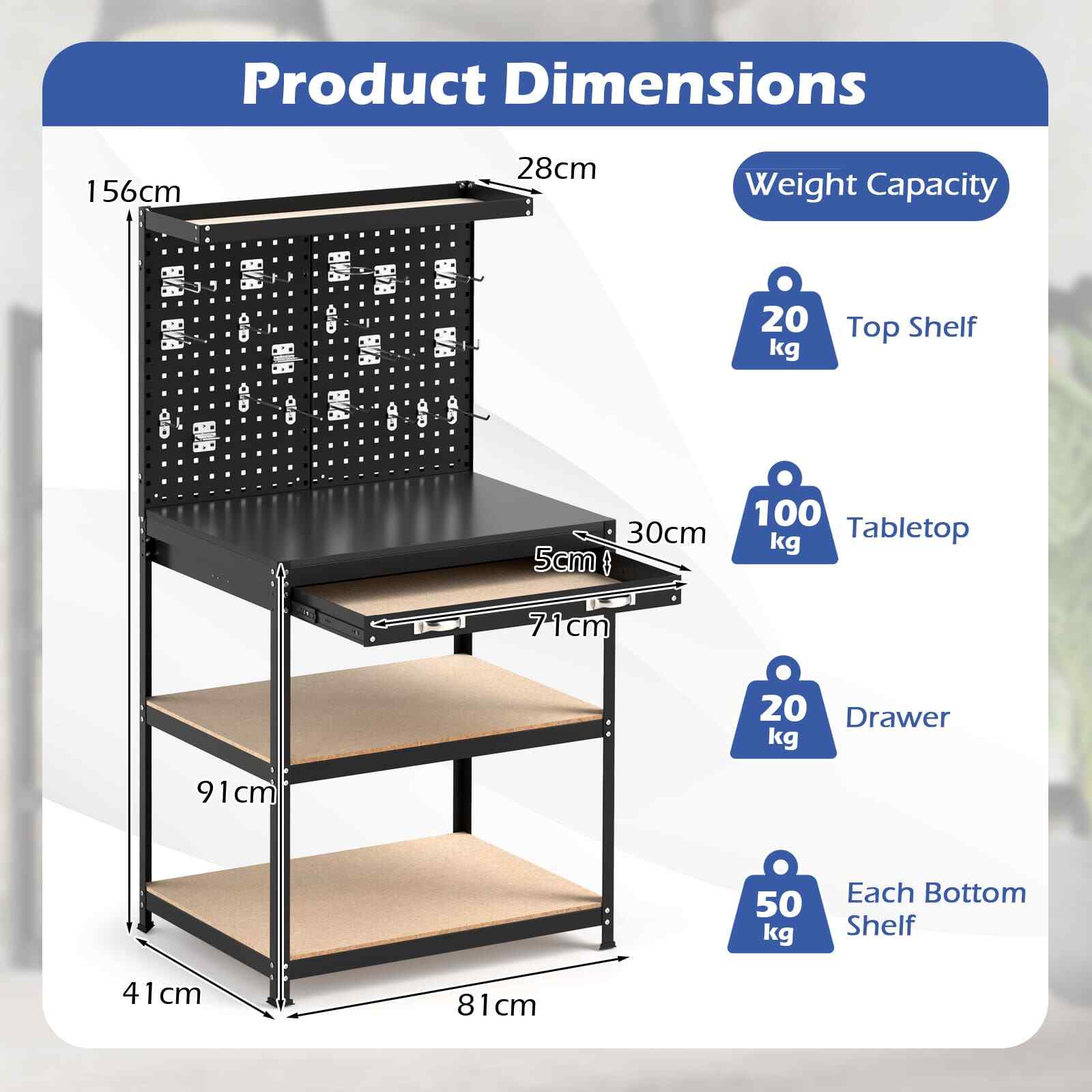81 x 41 CM Workbench Metal Tool Work Station w/2 PCS Pegboard-Black