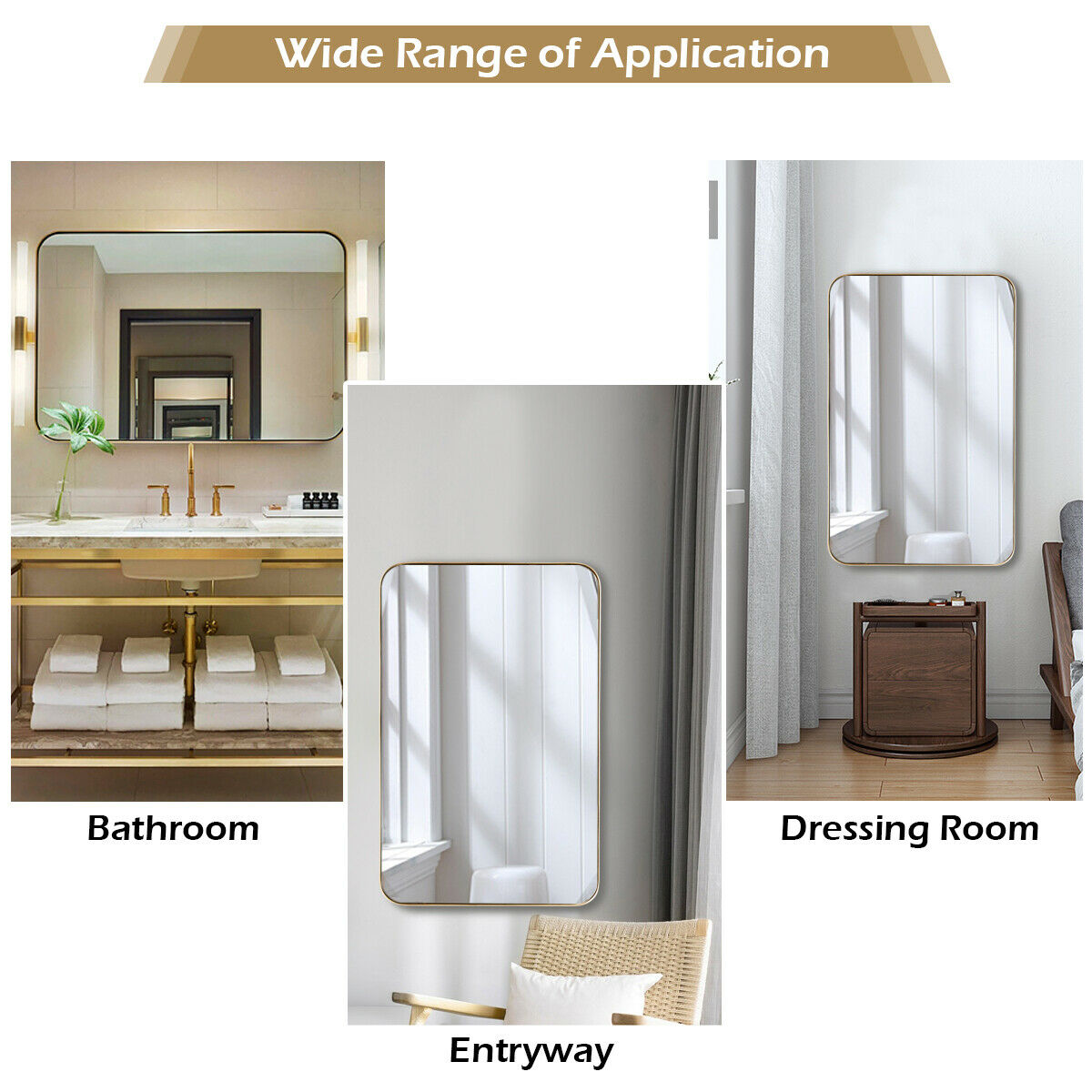 81 x 51cm Bathroom Wall Mirror Rectangular Wall Hanging Mirror Rounded Corner
