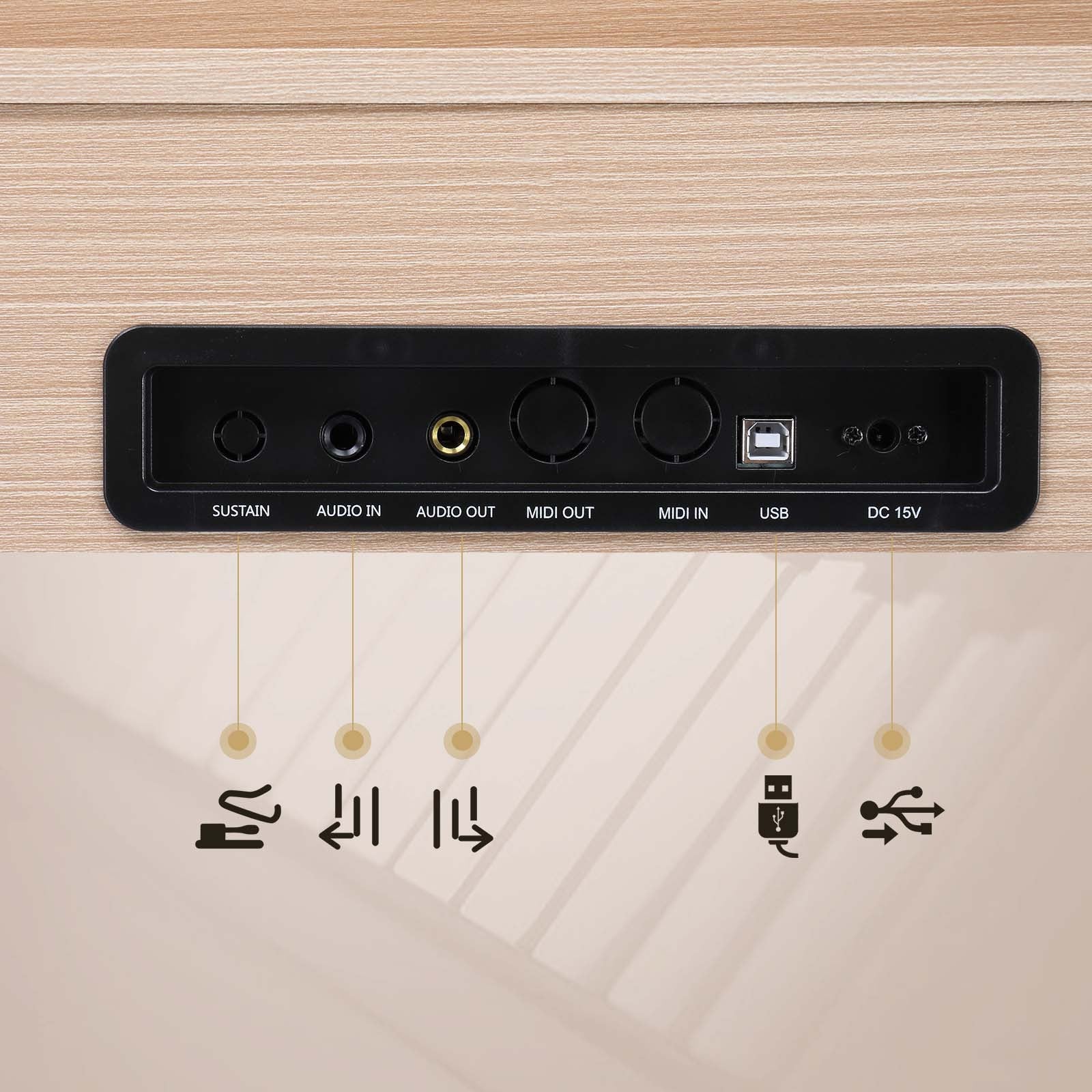 3 Pedal inputs Soft/Sustain/Sostenuto Pedal