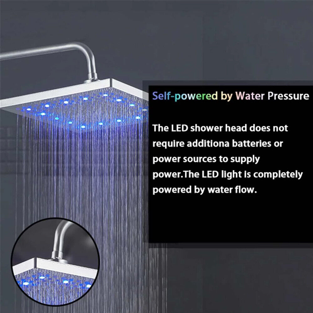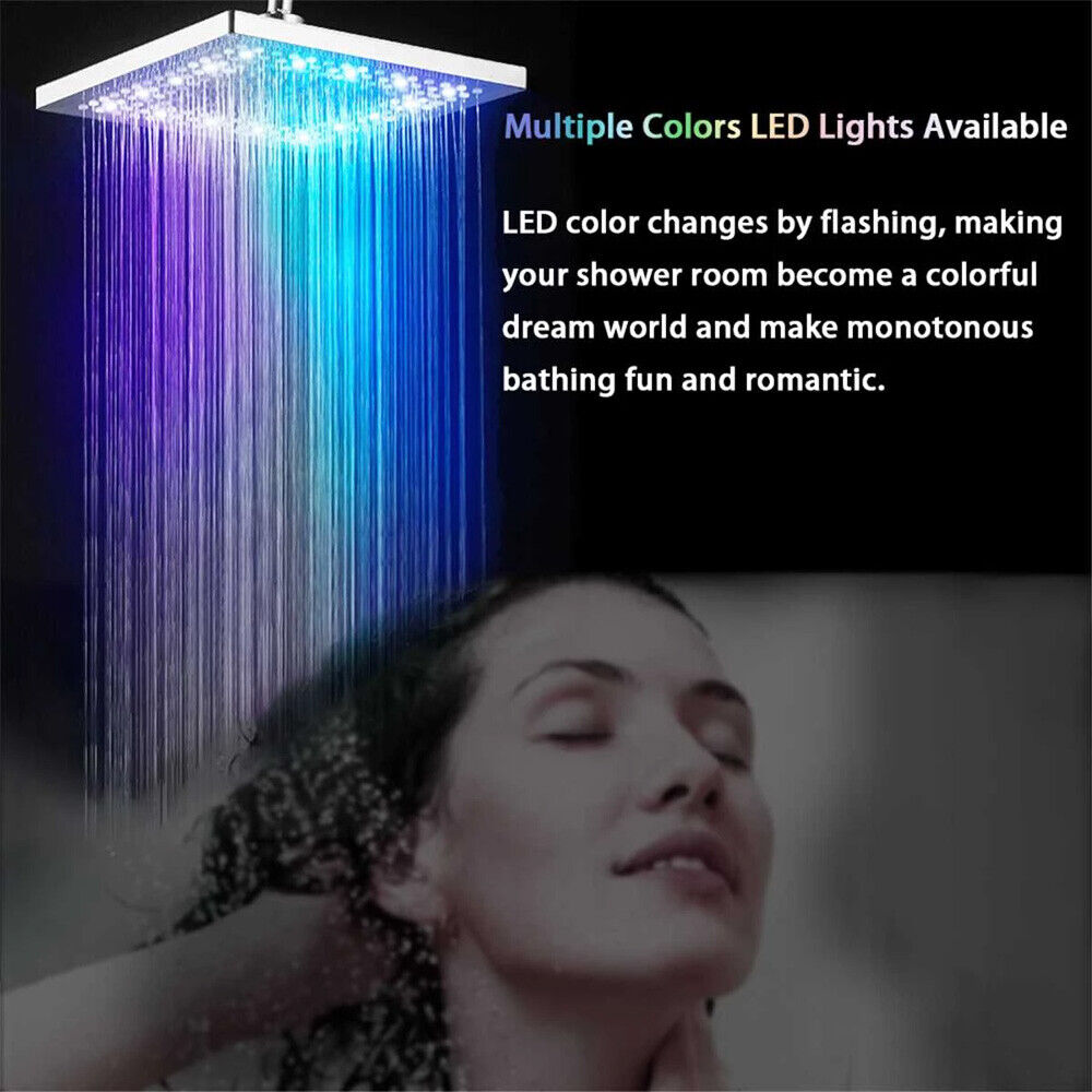8inch Colour Changing Large Square Shower Head High Quality Chrome Bathroom