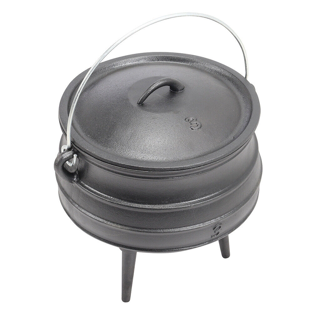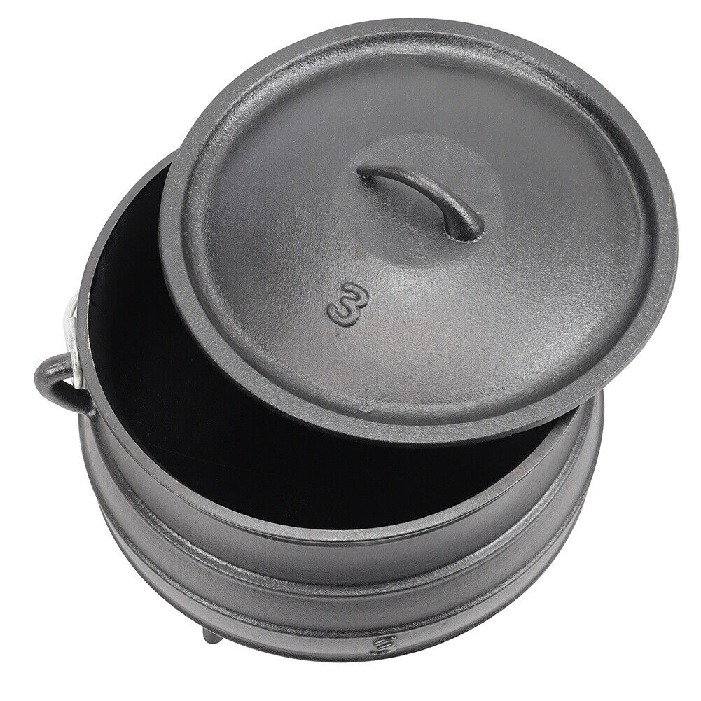 8L Cast Iron Dutch Oven Potjie Pot Outdoor Camping Fire Cooking Cooker W/ Handle