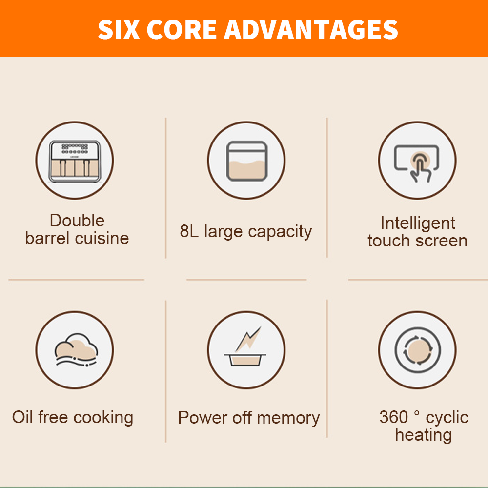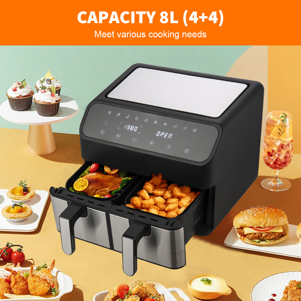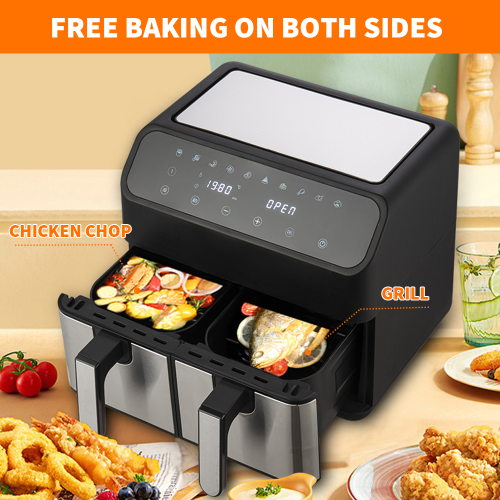 8L Dual Zone Digital Air Fryer Oven Cooker With 10 Cooking Functions Oil Free UK