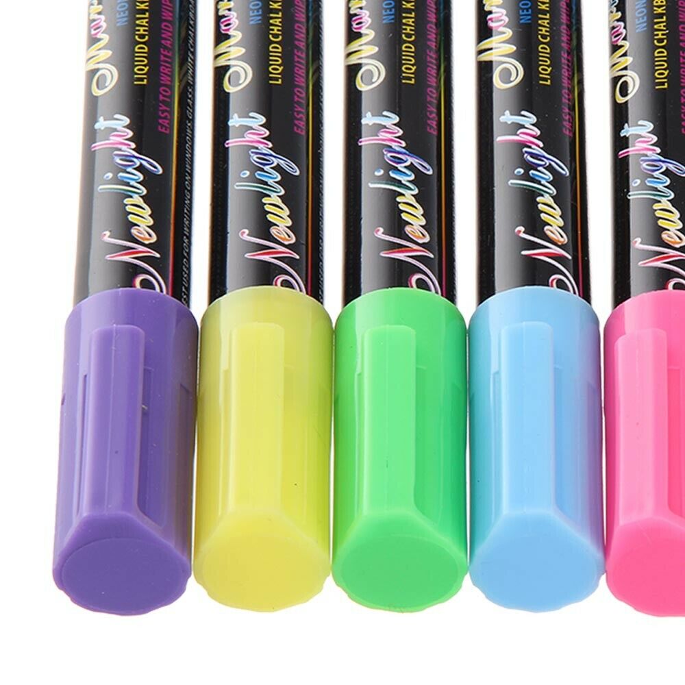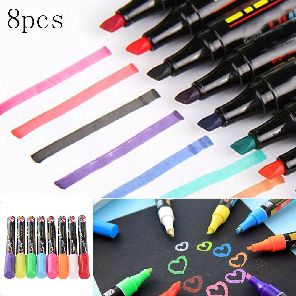 8Pcs Set Liquid Chalk Marker Pens Blackboard Glass Window Reversible Neon Pen