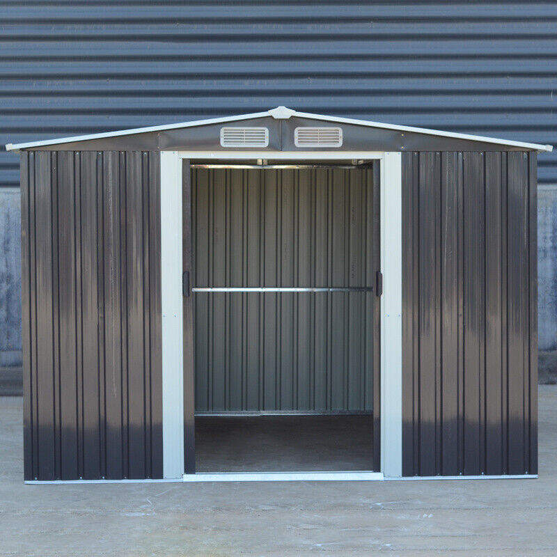 8x 8ft Shed Galvanized Metal Storage Garden Shed Tools Bicycle Store Anthracite