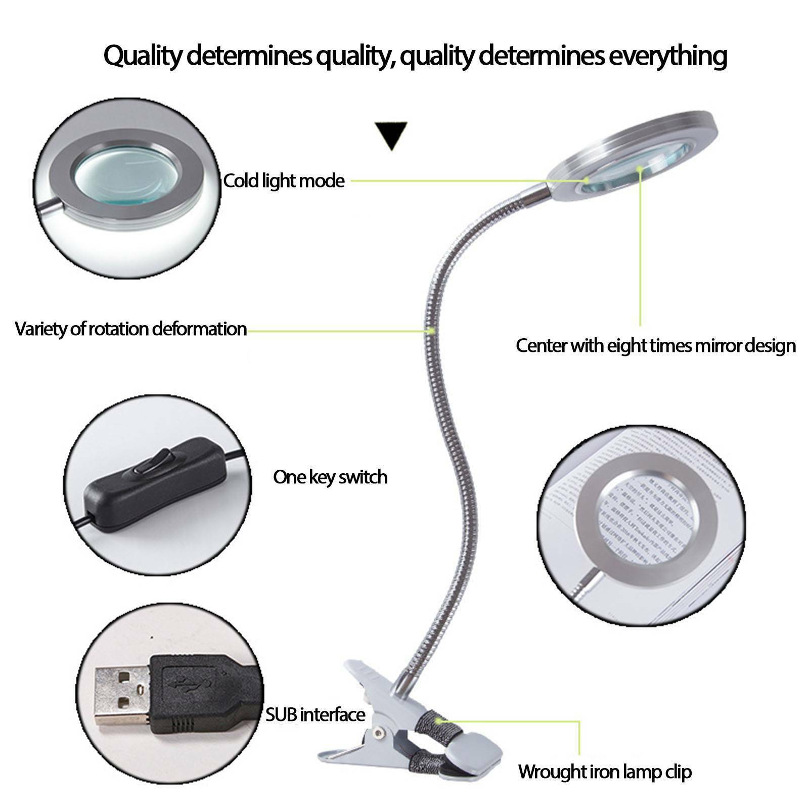 8X Magnifying Lamp Desk Table Top Glass Beauty Nail Salon Tattoo Magnifier Light