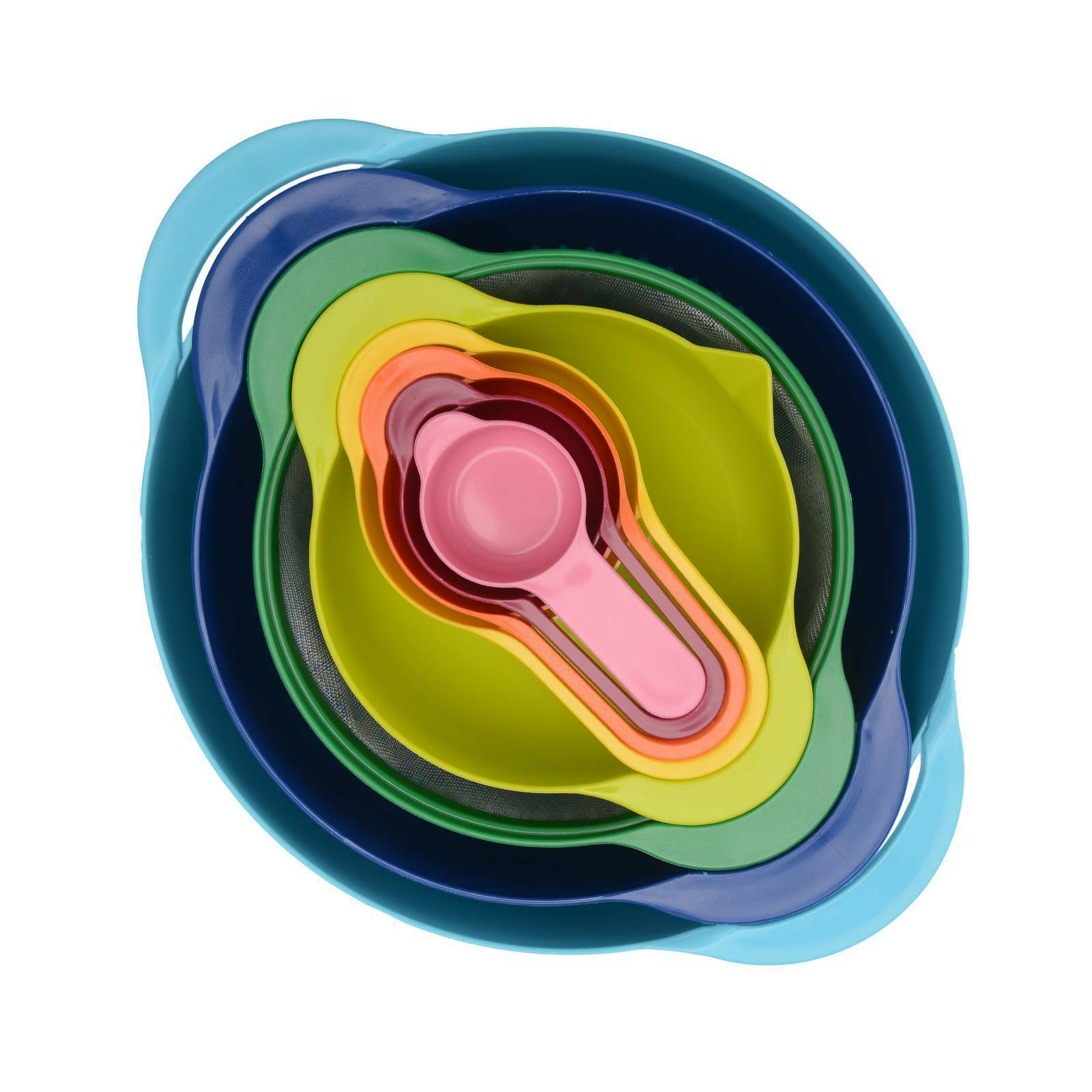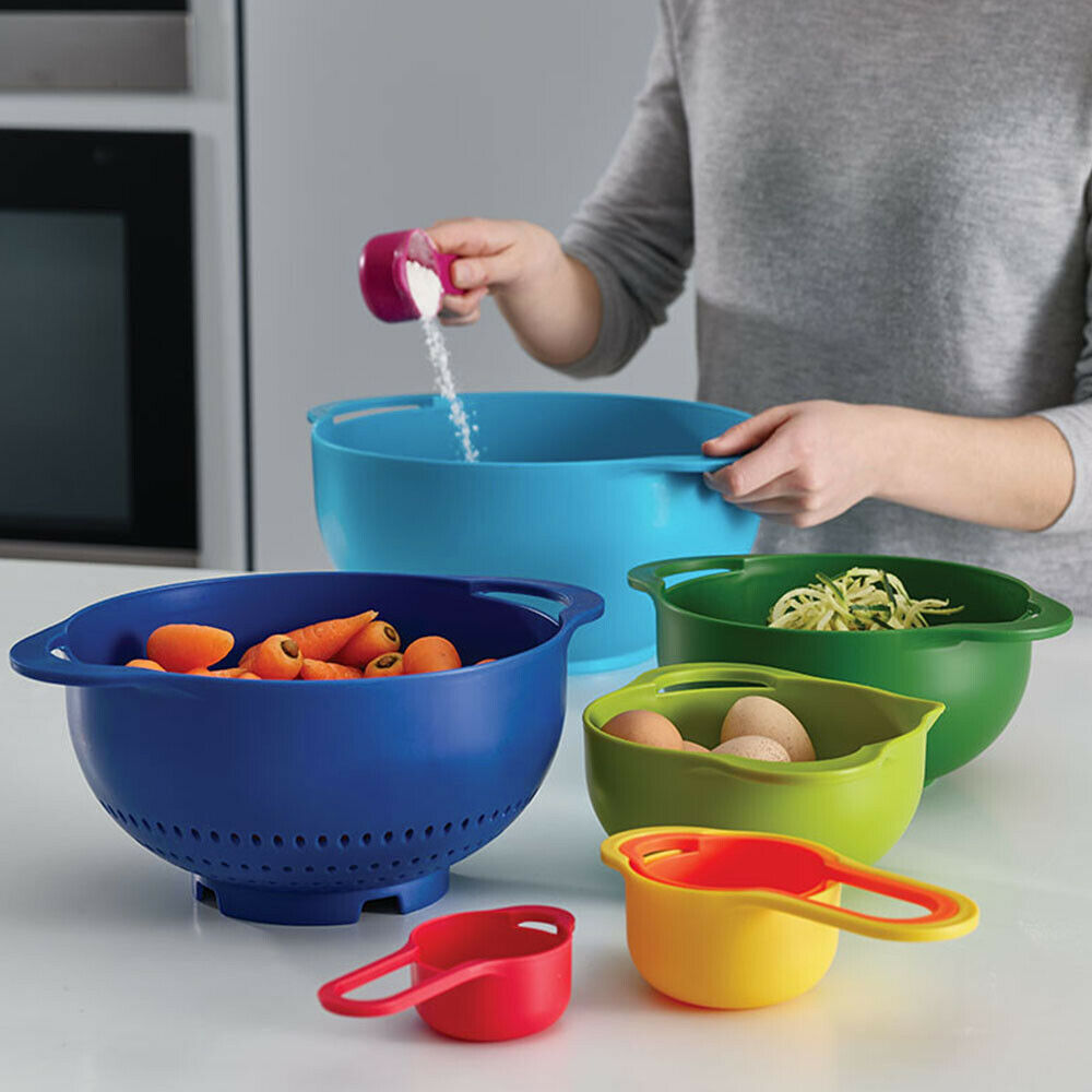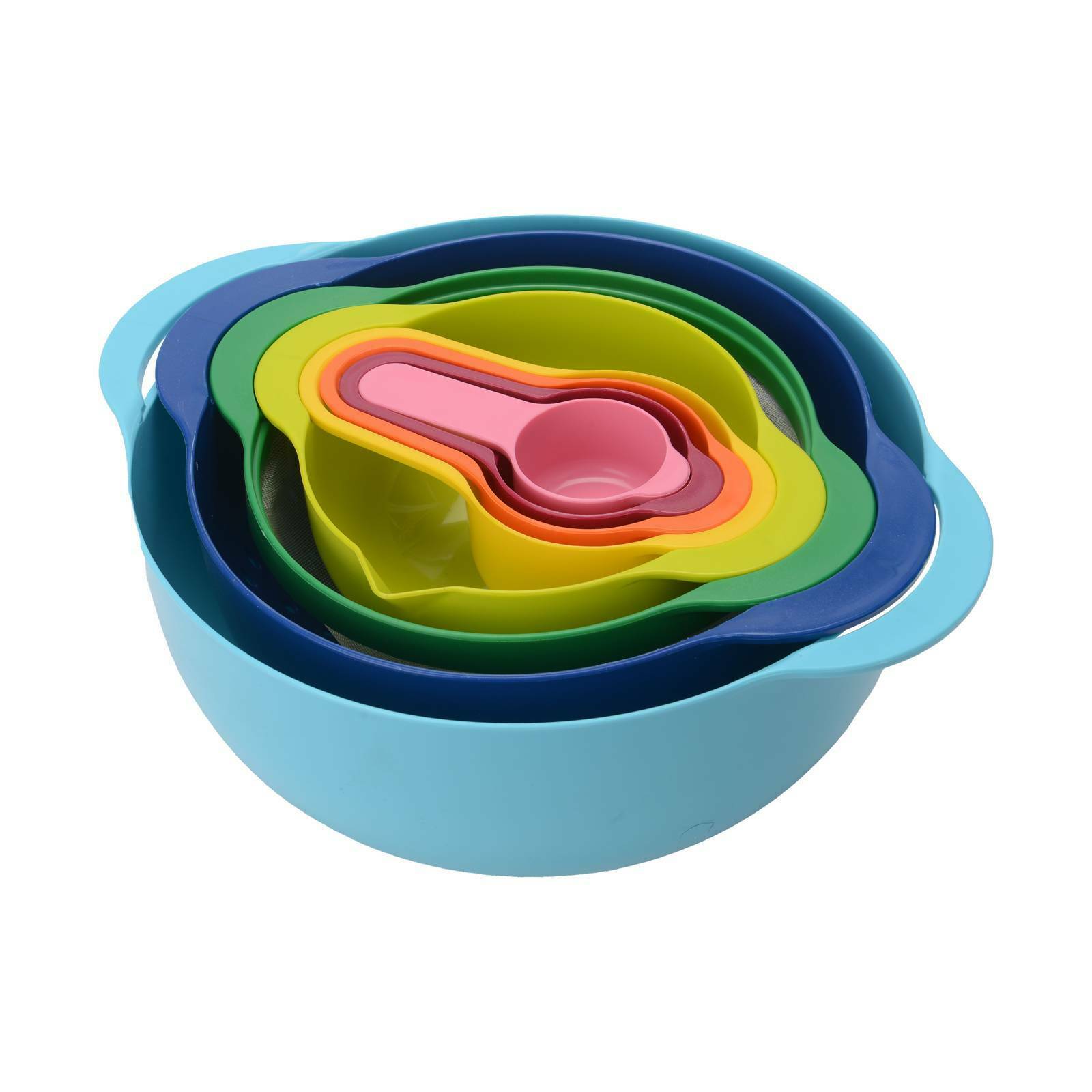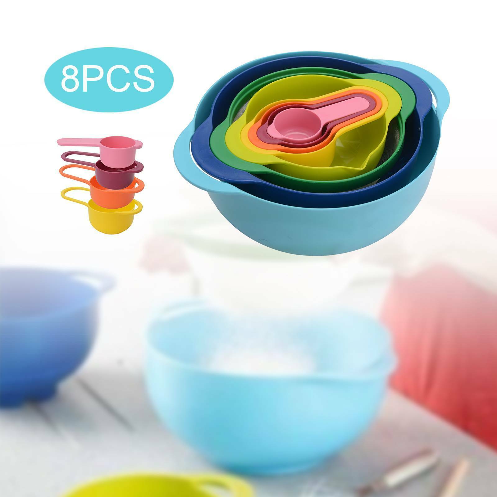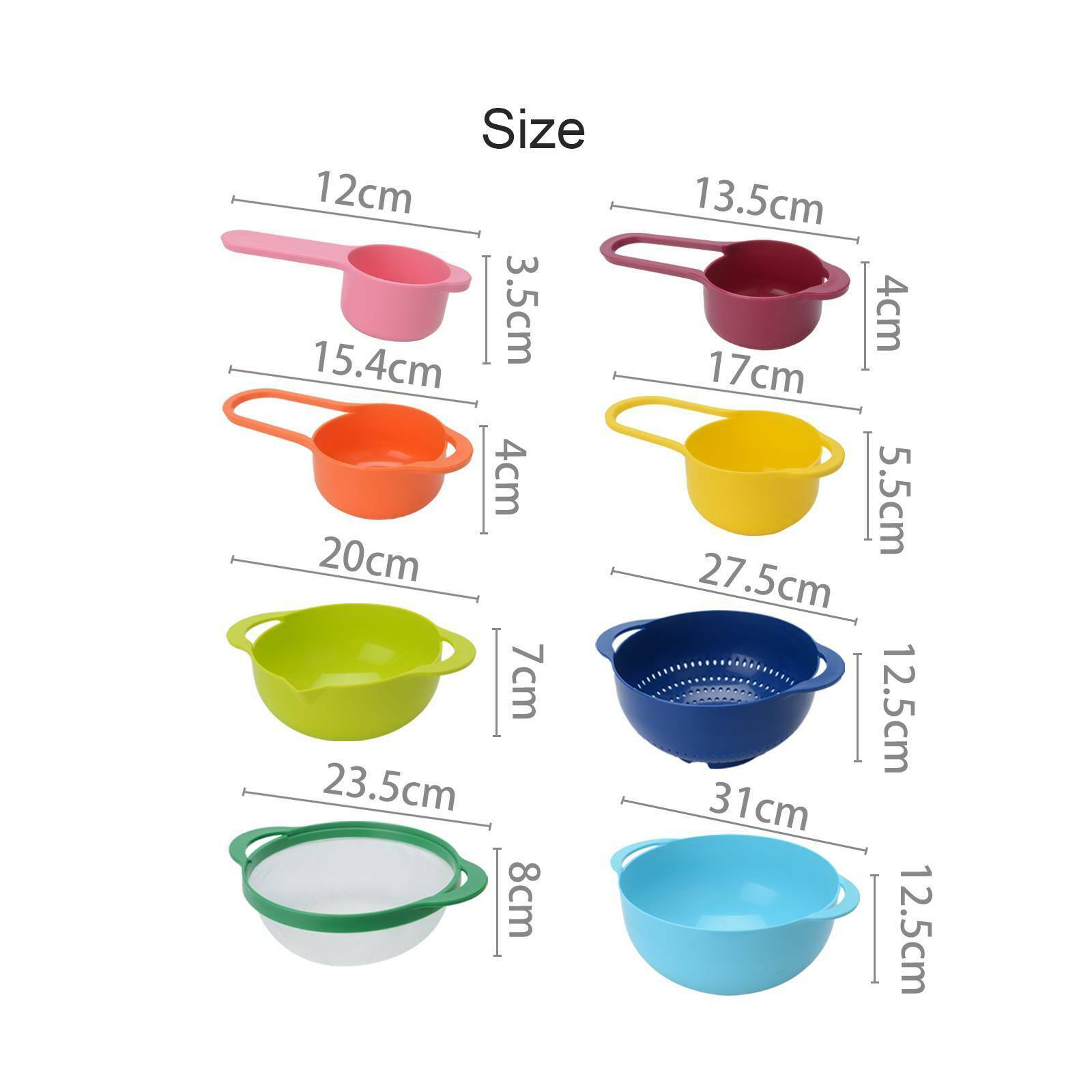 8x Measuring Mixing Bowl Set Cup Sieve Strainer Colander Kitchen Baking Cooking