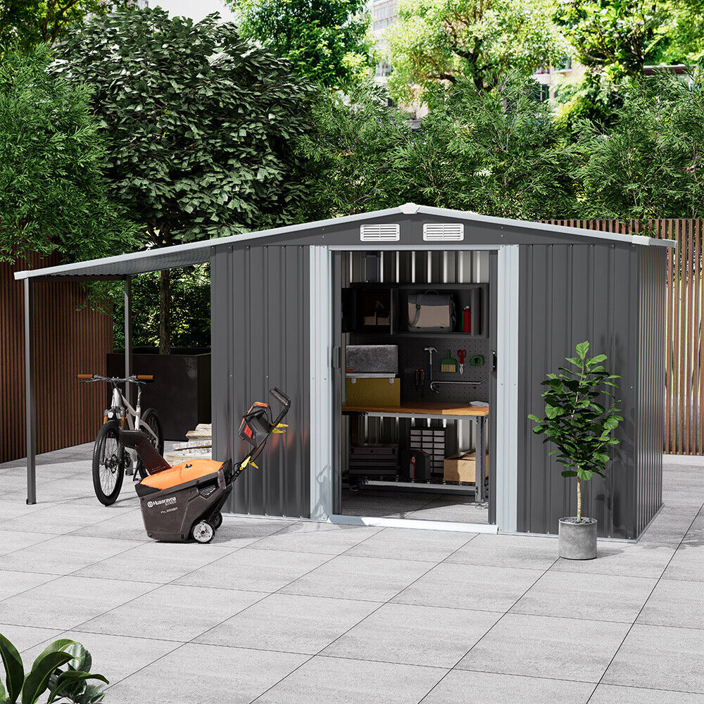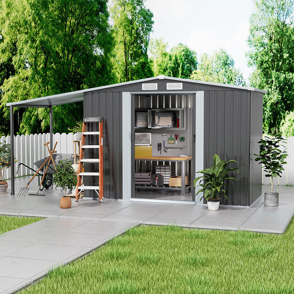 8x4FT Lockable Metal Garden Shed Sheds Outdoor Storage Hous WITH Open Shed