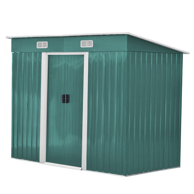 8x4FT Outdoor Storage Garden Shed Sliding Door Galvanised Metal Green Tool House