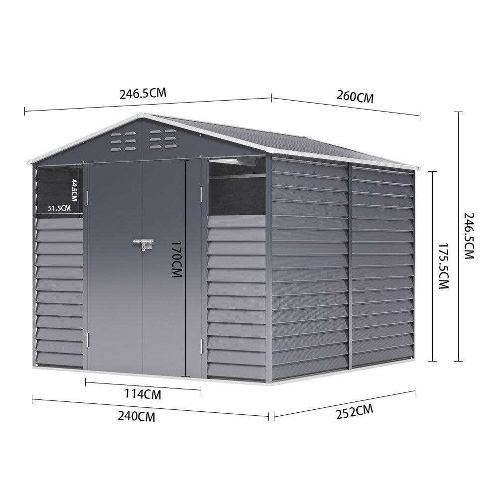 8X8.5FT Steel Lockable Garden Tool Shed Storage Outdoor Utility Shelter LogStore