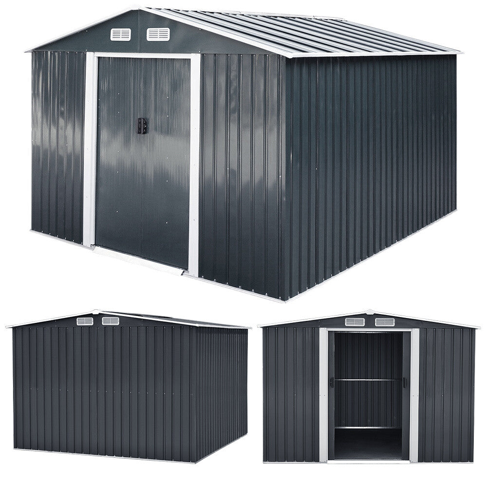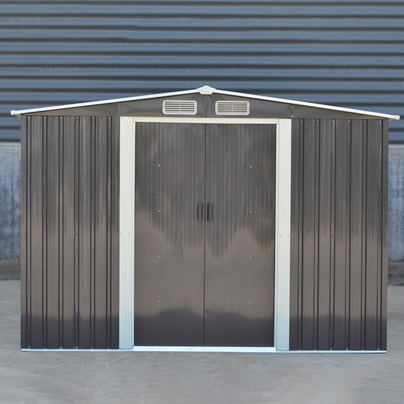 8x8FT Metal Garden Shed Apex Roof With Free Foundation Storage House Anthracite