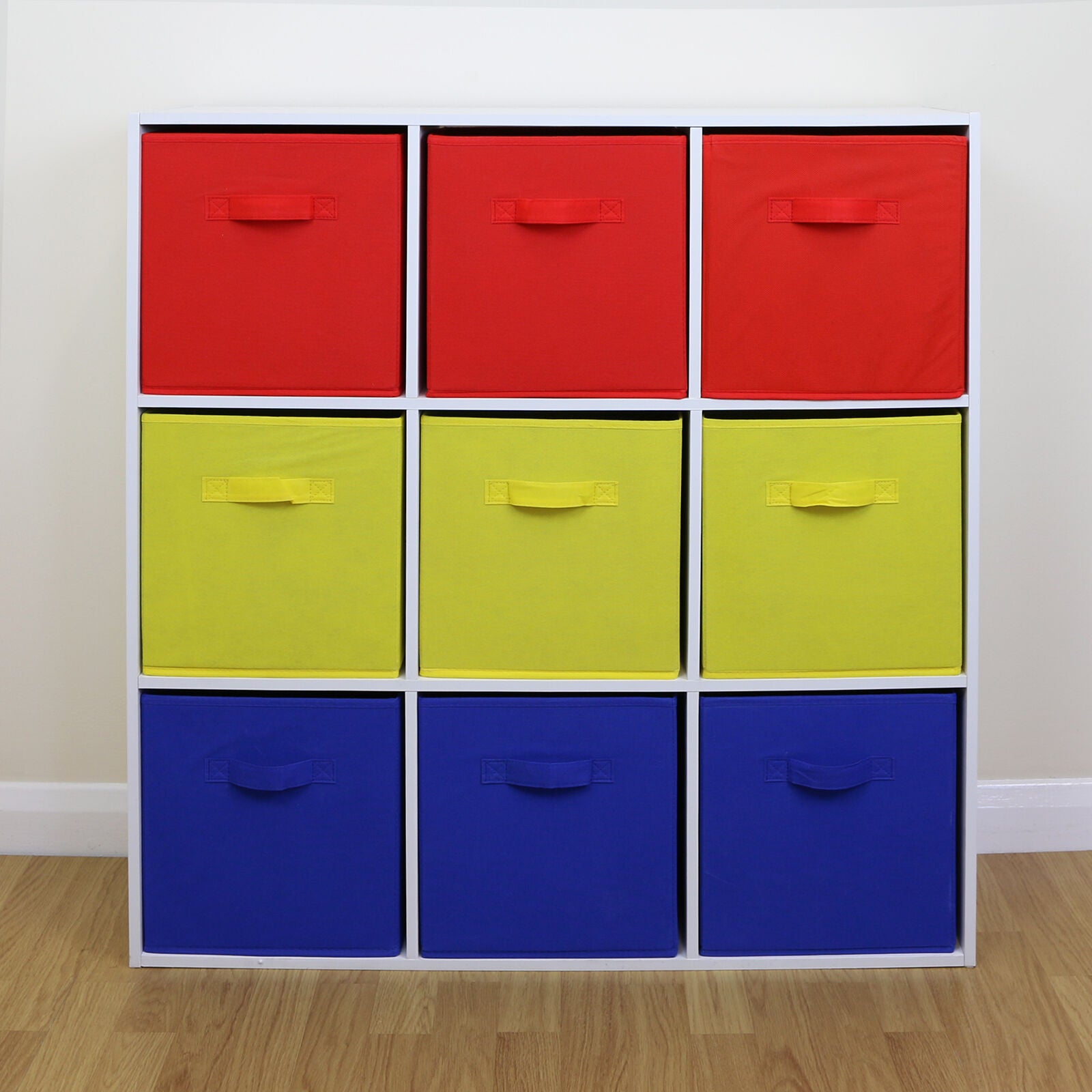 9 Cube Kids Red Yellow & Blue Toy/Games Storage Unit Girls/Boys Bedroom Shelves