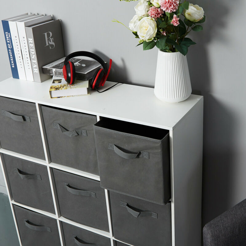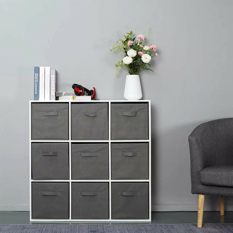 9 Cube Wooden Bookcase Shelving Unit Display Storage w/ 9 Foldable Canvas Basket