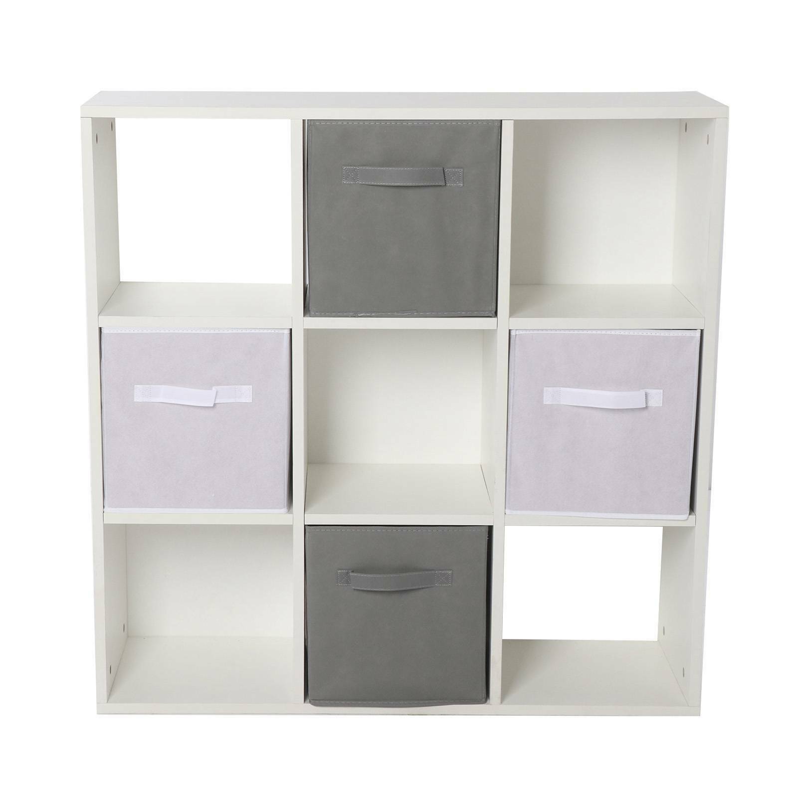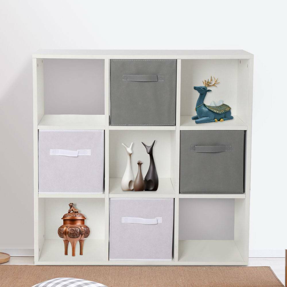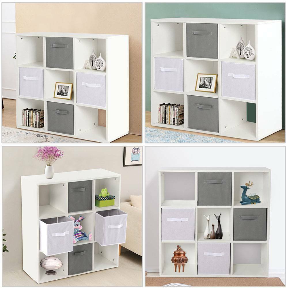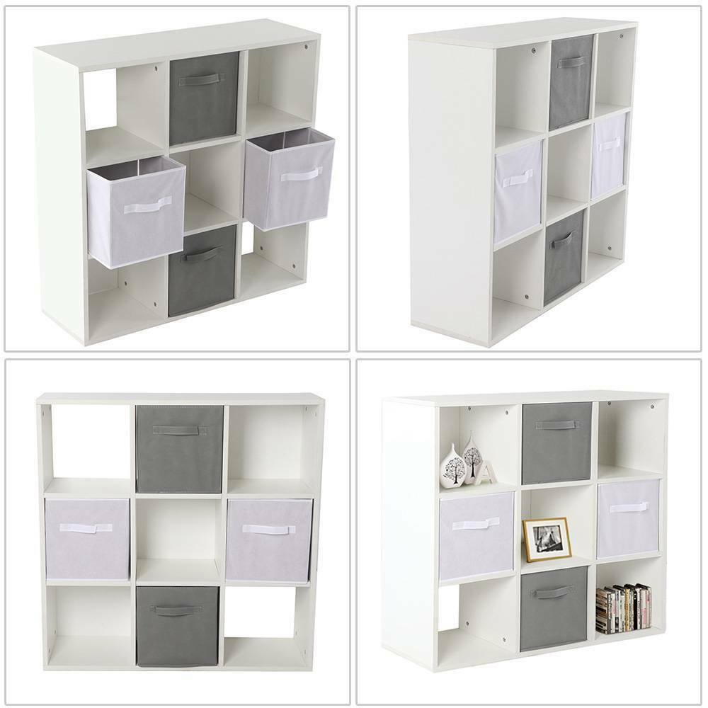 9 Cube Wooden Bookcase Shelving Unit w/ Grey Canvas Basket Display Storage Shelf