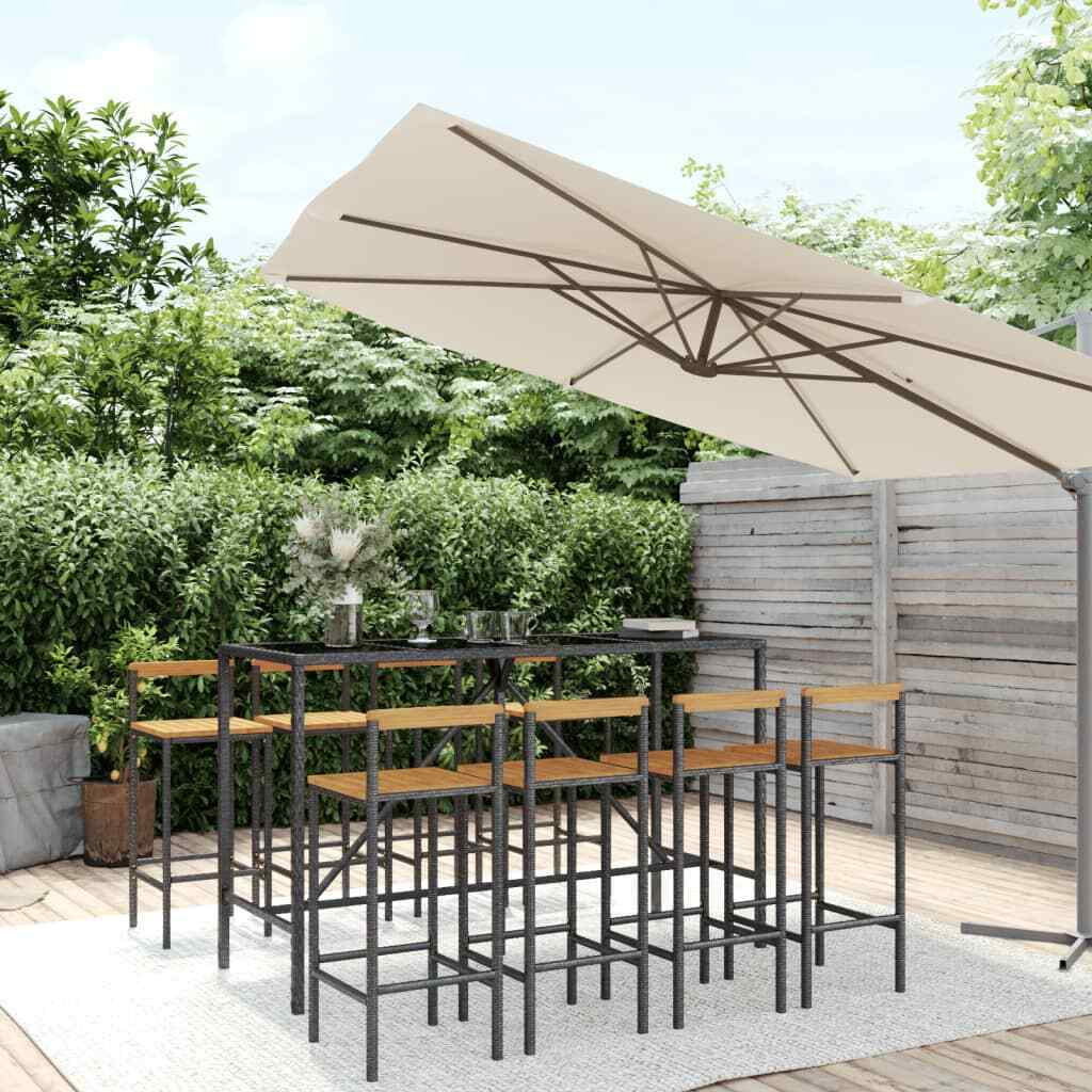 9 Piece Garden Bar Set Black Poly Rattan & Solid Wood Acacia