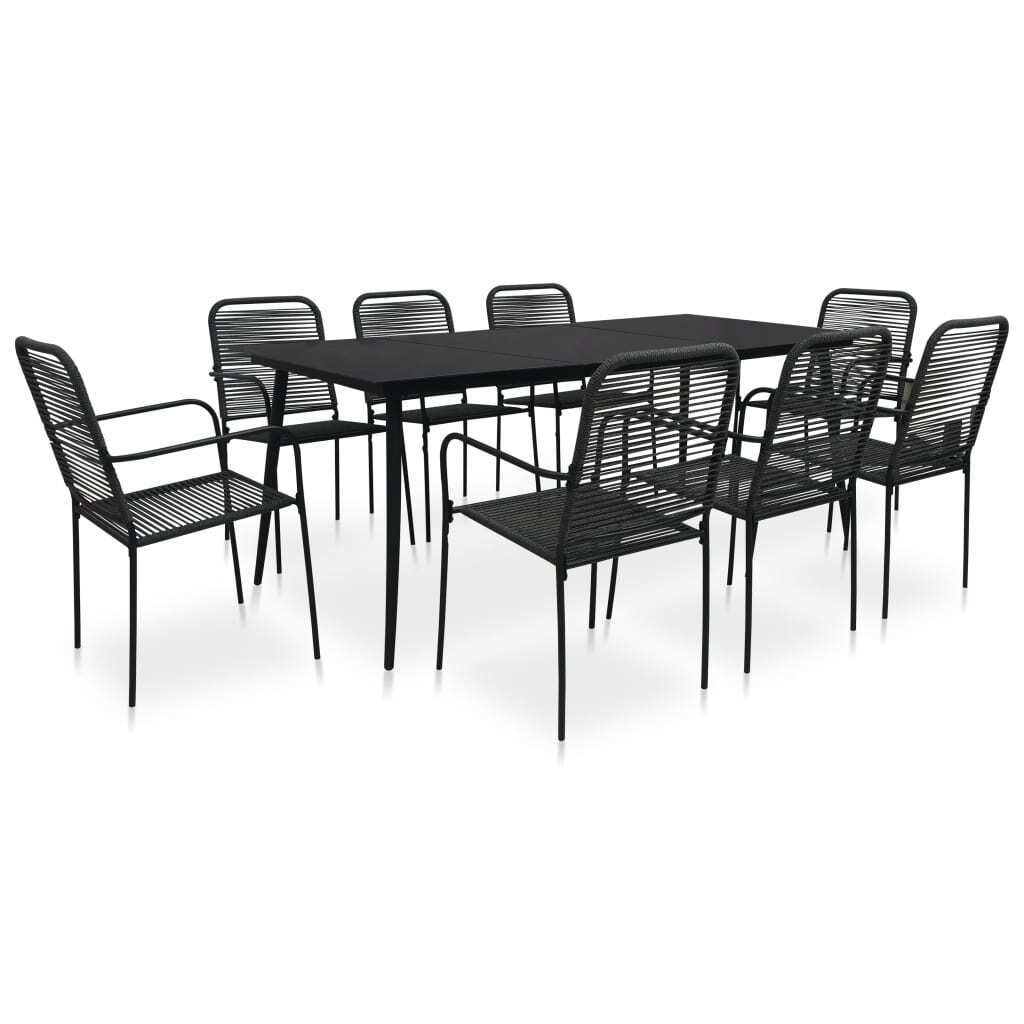 9 Piece Outdoor Dining Set Cotton Rope and Steel Black
