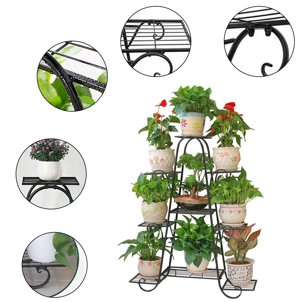 9 Pot Metal Plant Stand Home Outdoor Garden Flower Pot Shelf Display Rack