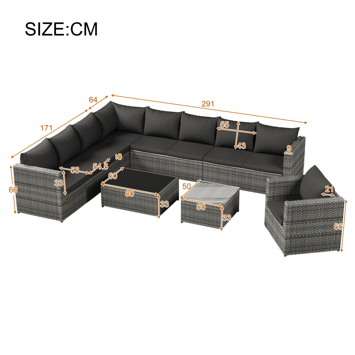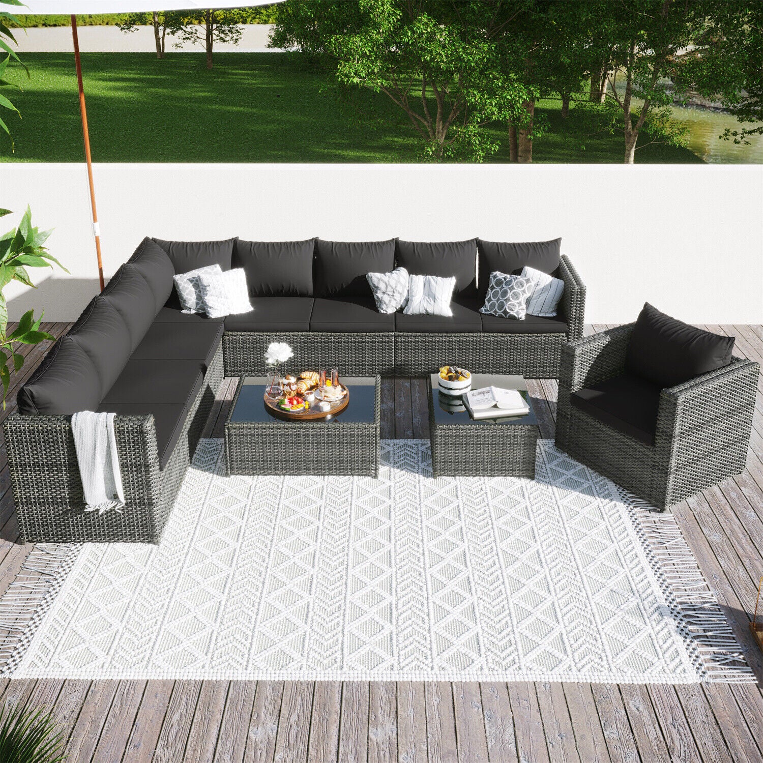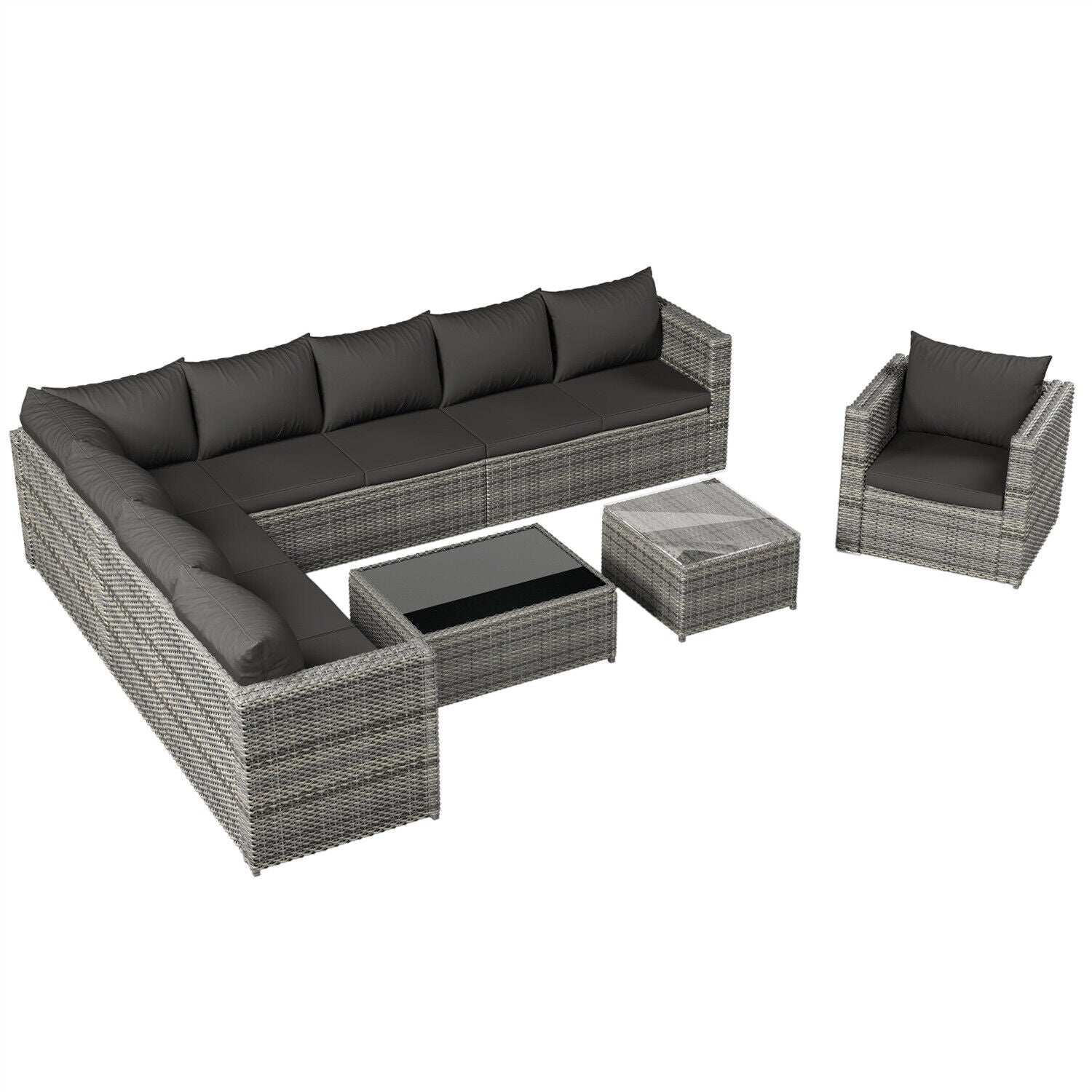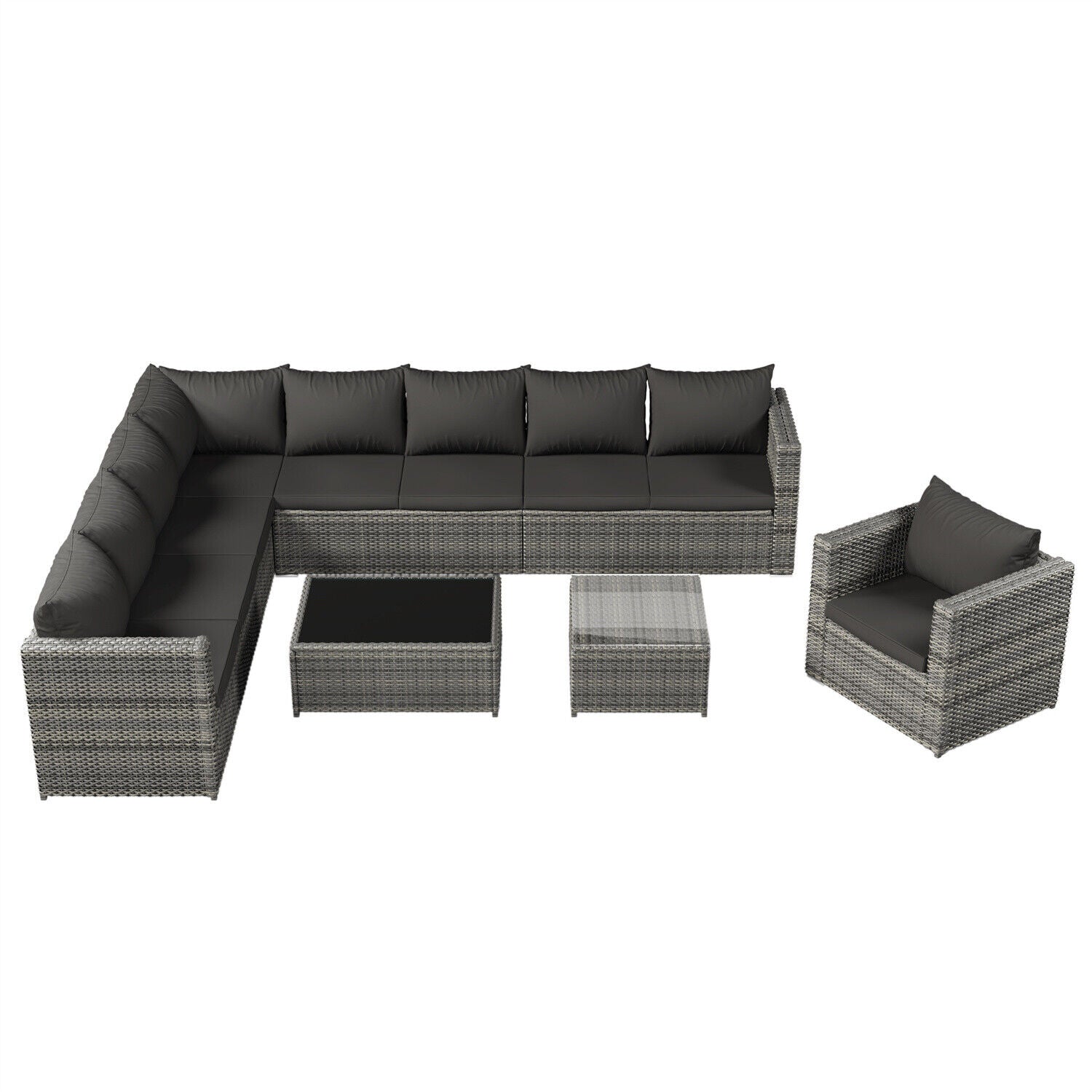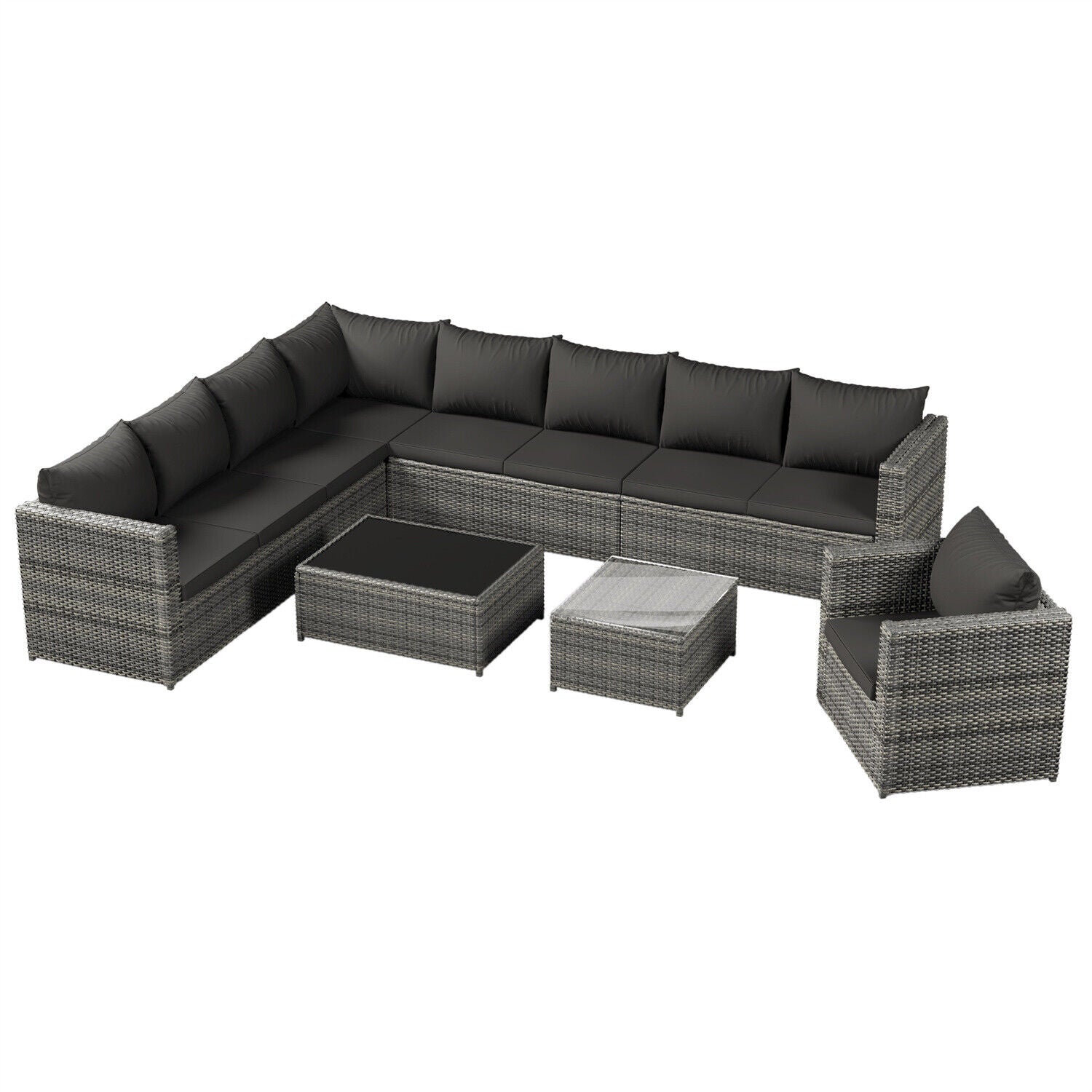 9-seater Outdoor Rattan Patio Garden Furniture Set Corner Sofa Set Lounge Grey