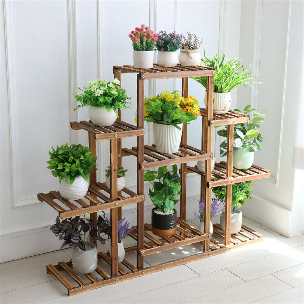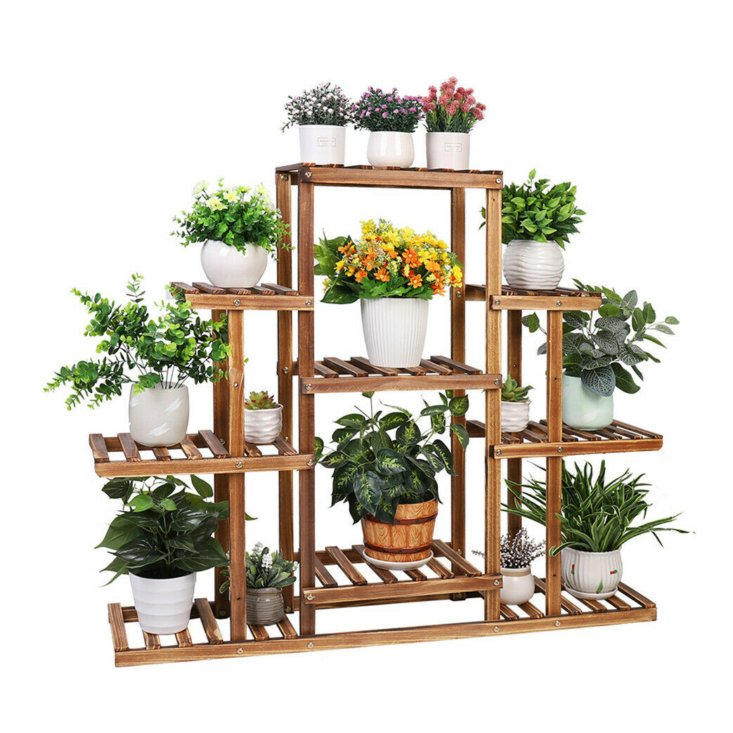9 Tier Flower Rack Wood Plant Shelf Stand 13 Pots Bonsai Display Shelf Holder