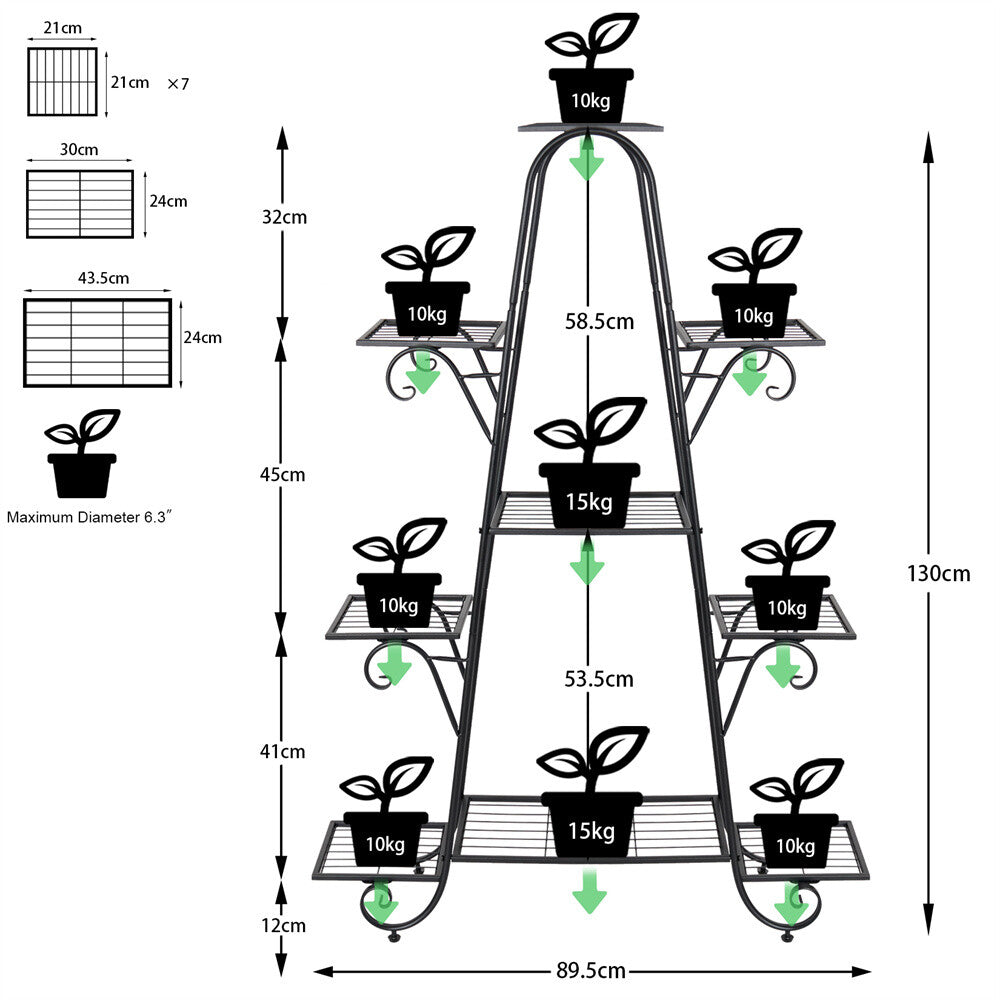 9 Tier Large Plant Stand Metal Flower Pot Holder Display Shelf Garden Rack Home
