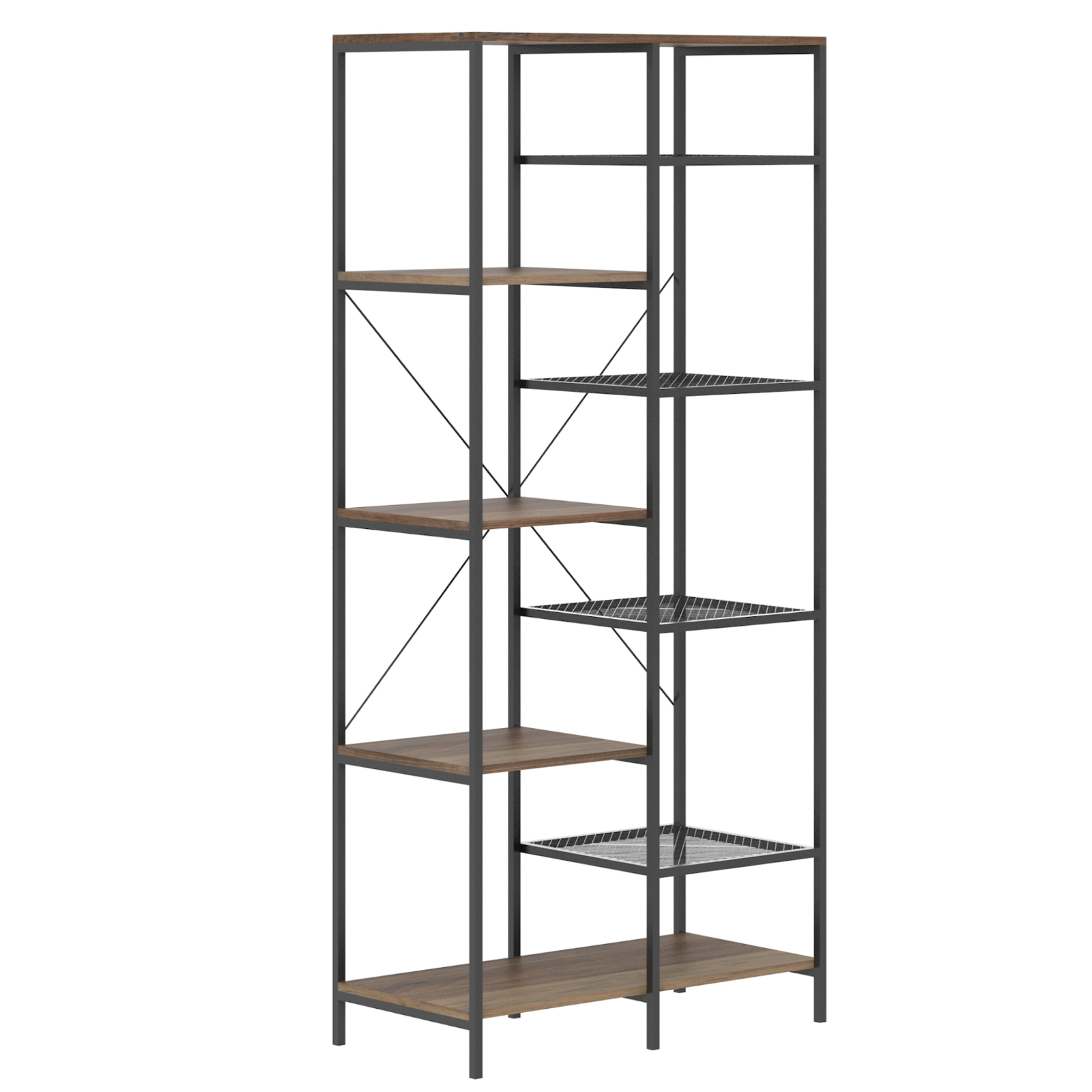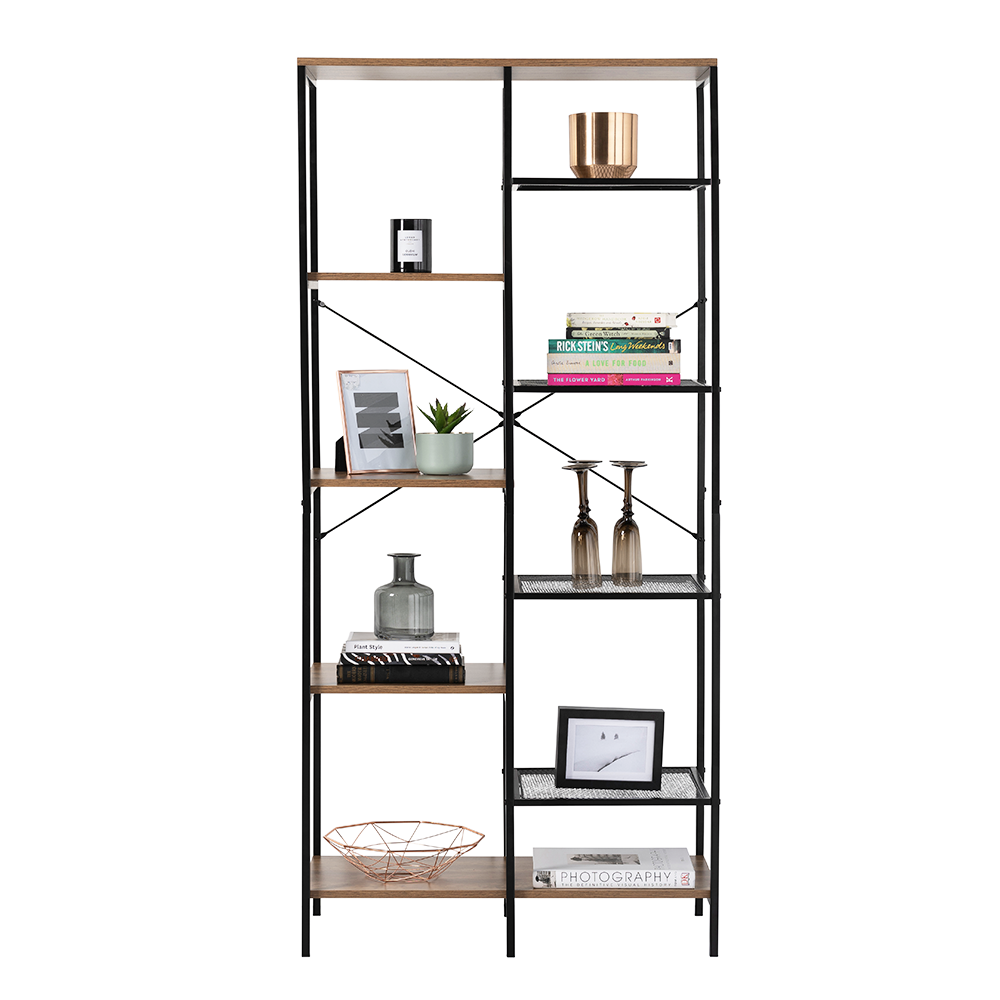 9 Tier Storage Bookshelf Mid Oak Style With Industrial Details 1700mmH x 790mmW