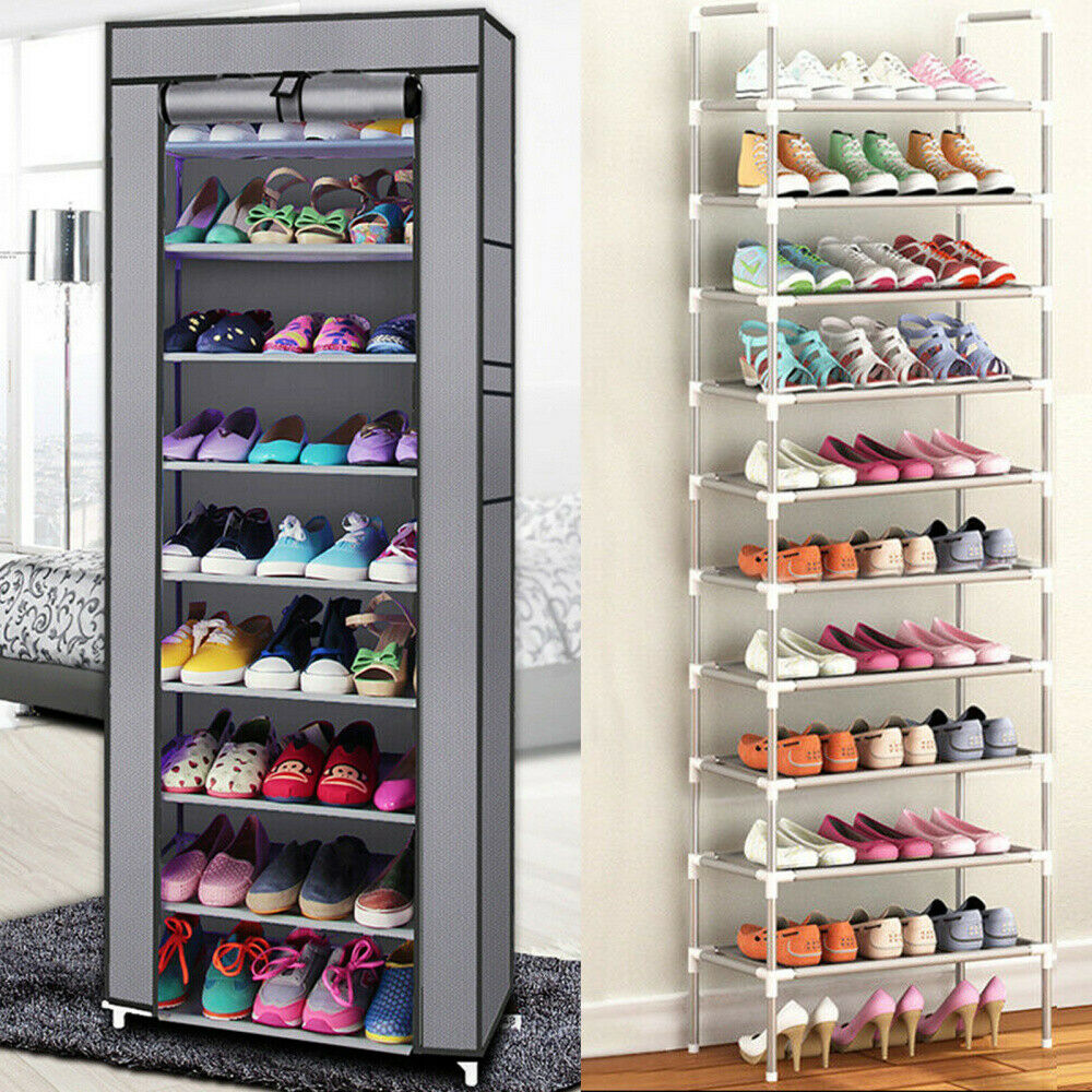 9 Tiers Shoe Rack Storage Shelf Display Stand Organiser Unit Cabinet Drawer Case