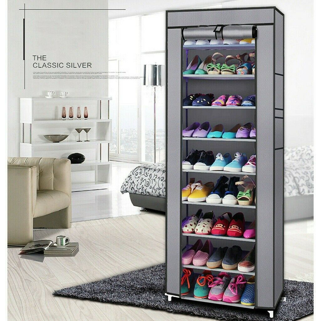 9 Tiers Shoe Rack Storage Shelf Display Stand Organiser Unit Cabinet Drawer Case