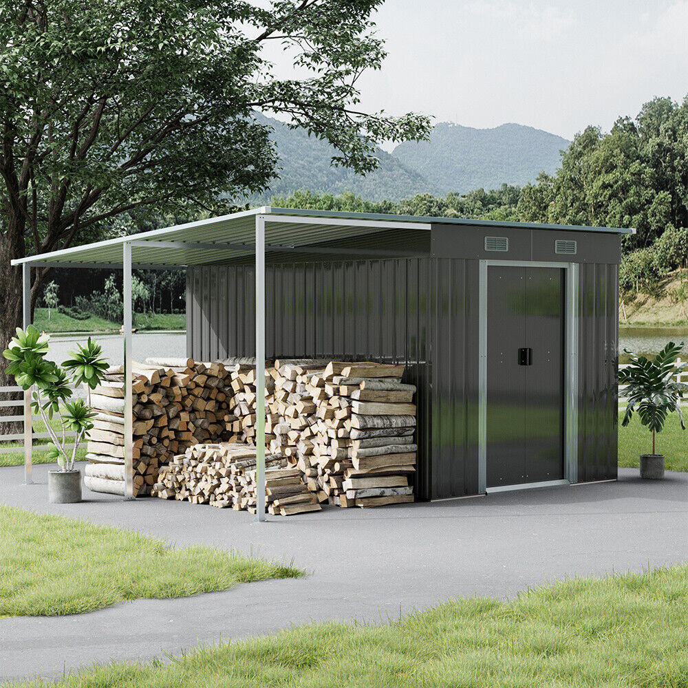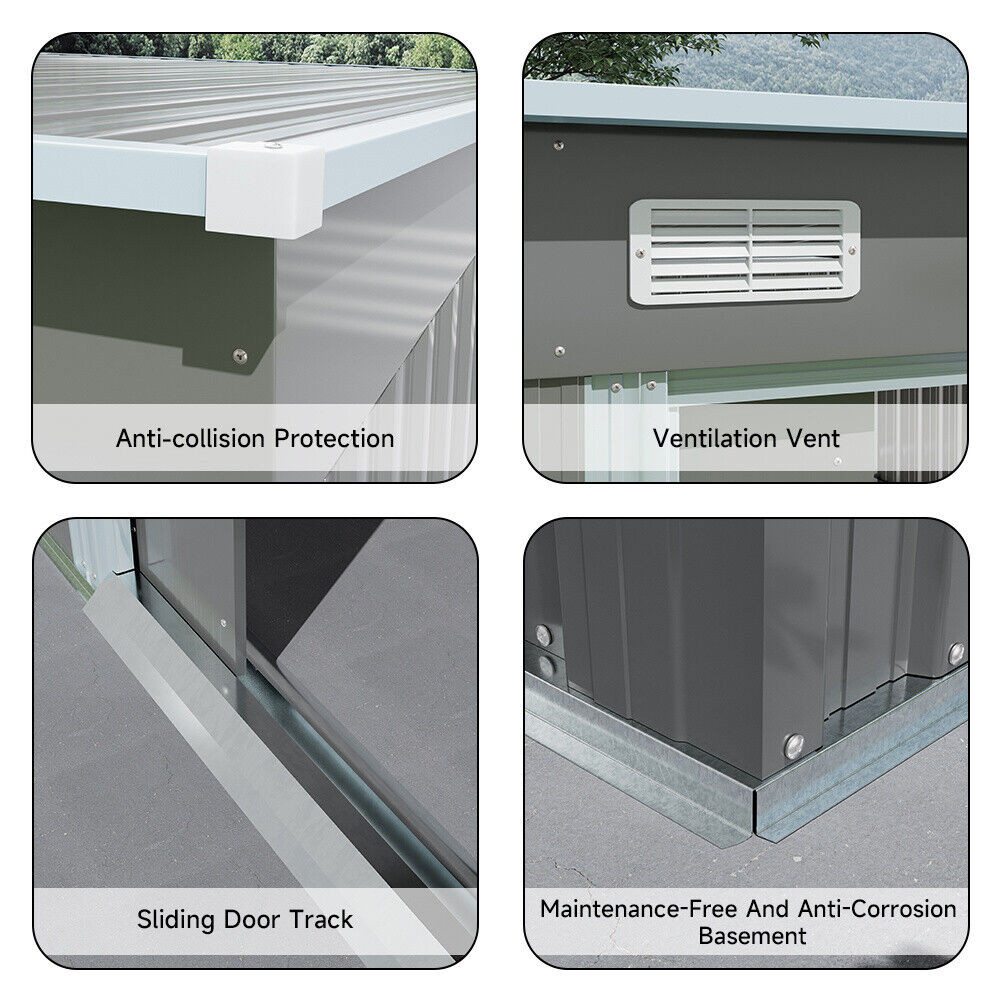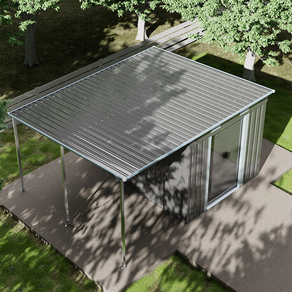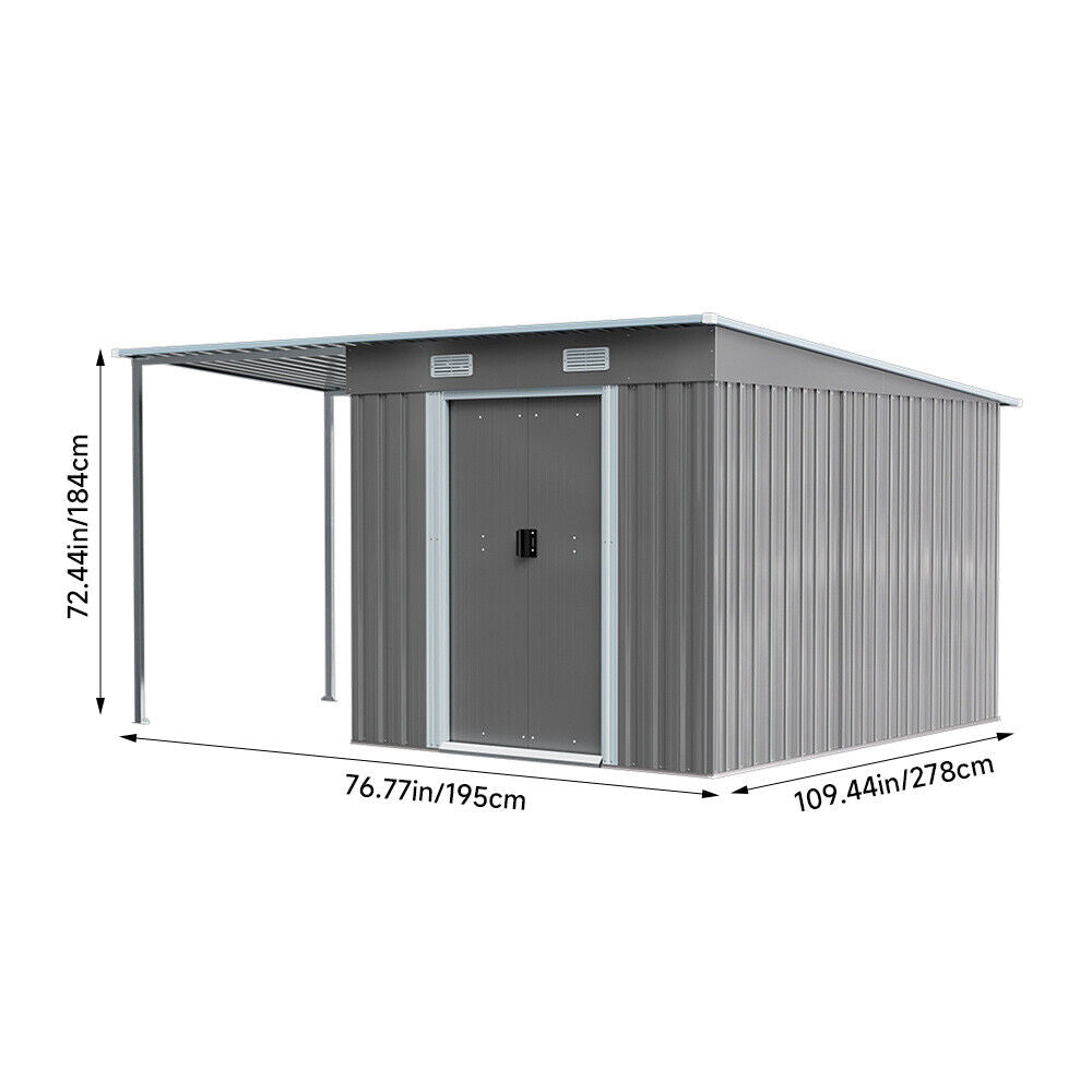 9 X 5.5ft Galvanized Metal Garden Storage Bike Tools Shed w/ Open Shed BBQ Party