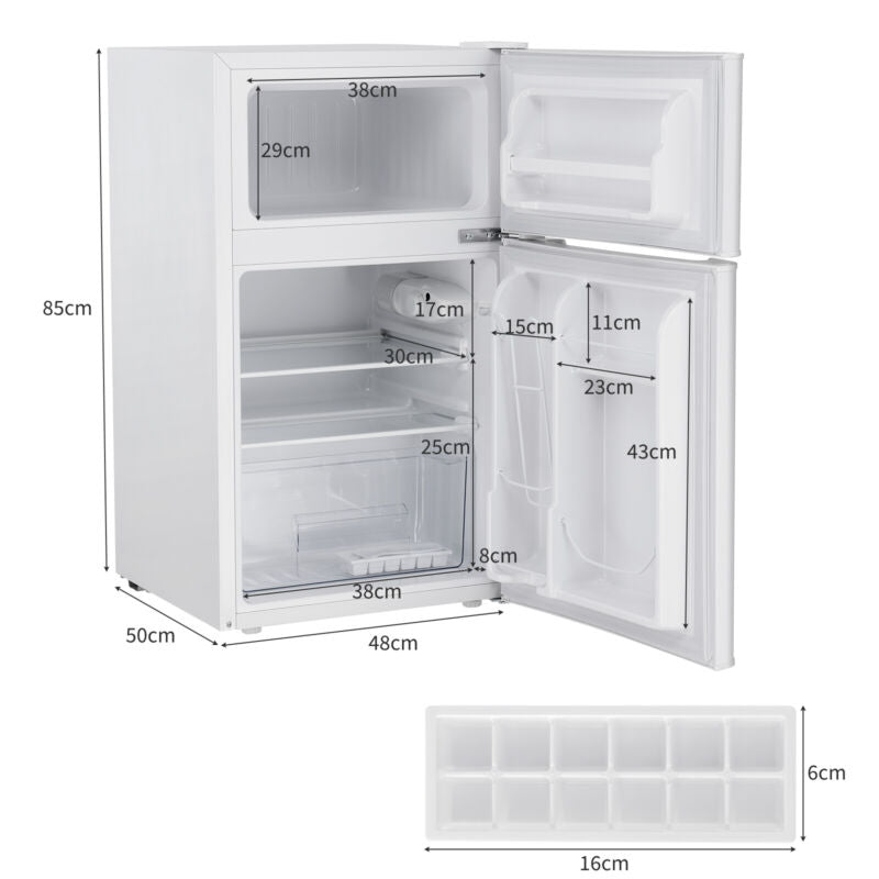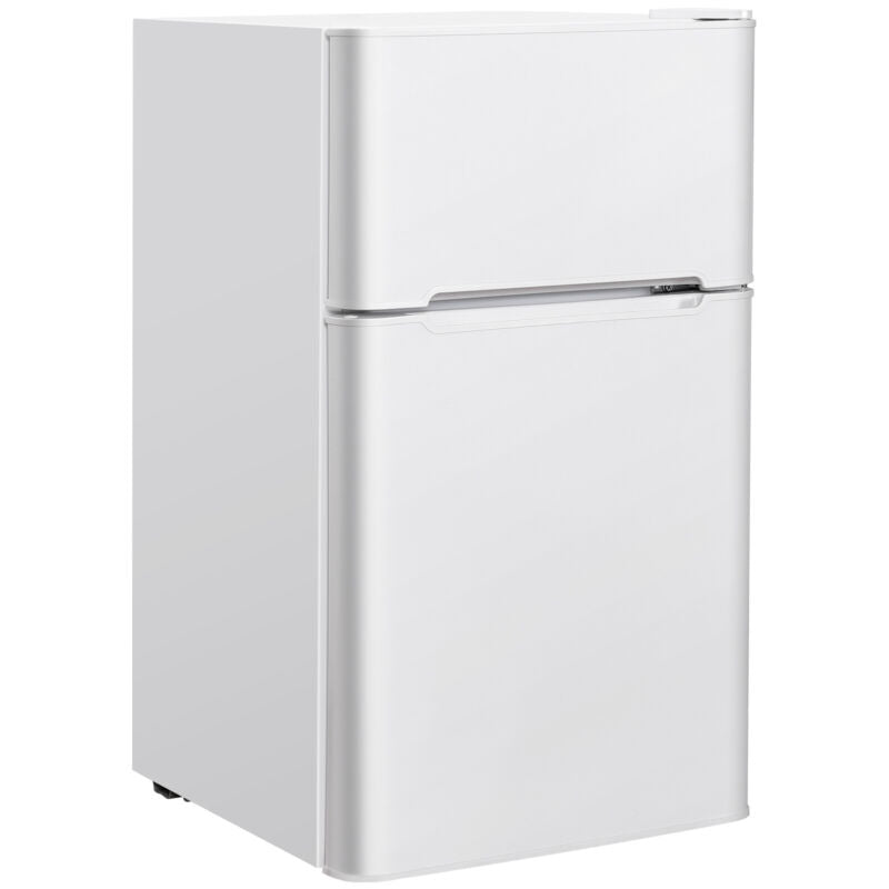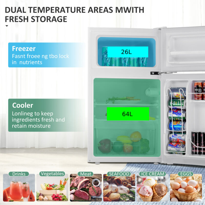 90 L Compact Refrigerator Double Door Cooler Fridge with Removable Glass Shelves